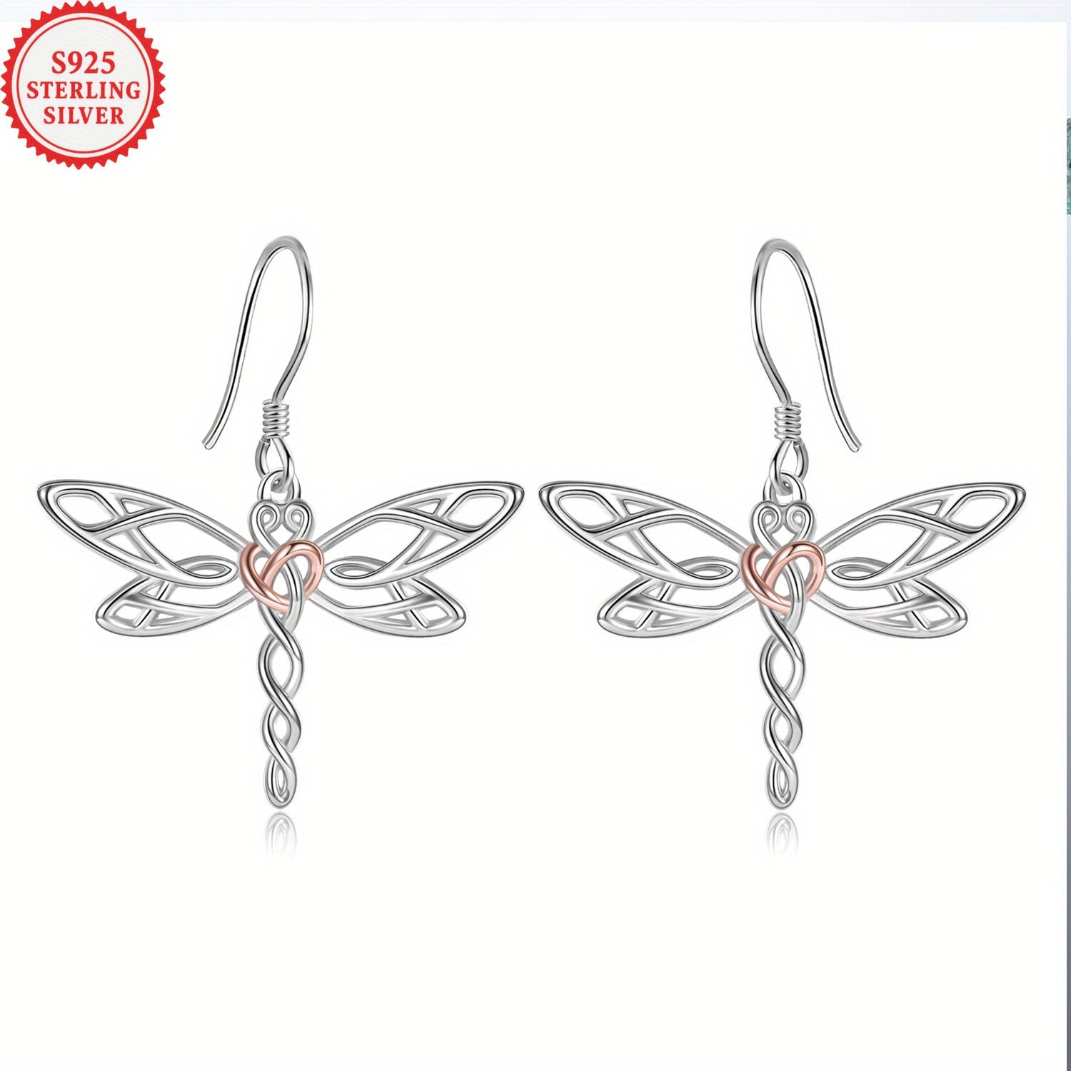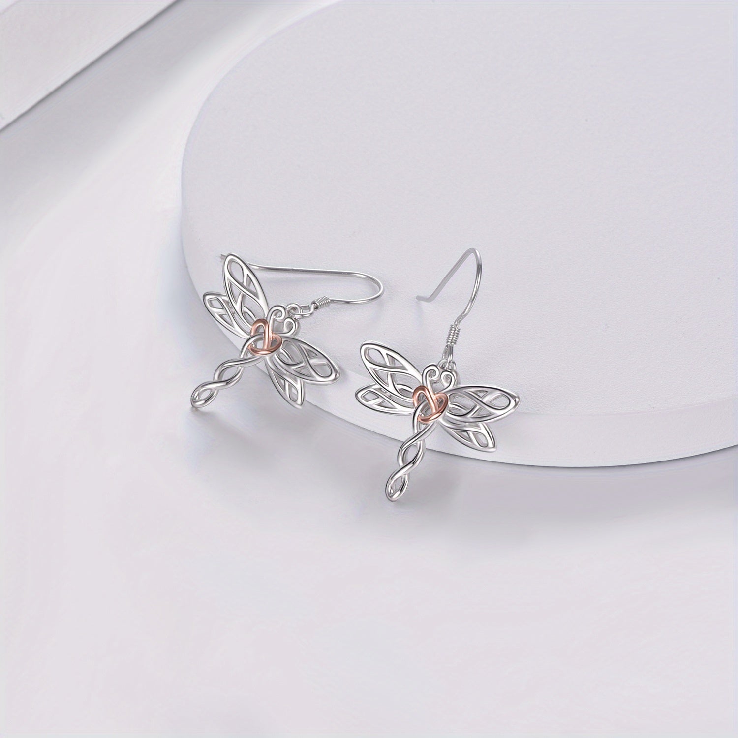 Sterling silver dragonfly dangle earrings featuring intricate Celtic knot design, perfect for adding a touch of Irish charm to your outfit.