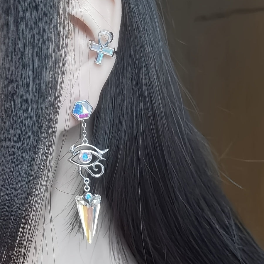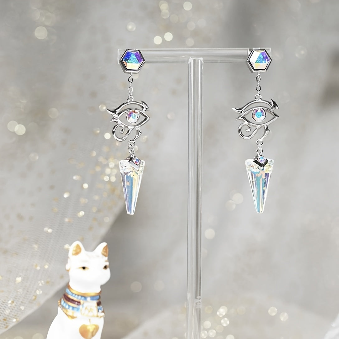 Embrace ancient Egyptian style with these unique earrings featuring the Eye of Protection design. Handcrafted with attention to detail, they are a perfect blend of history and fashion.
