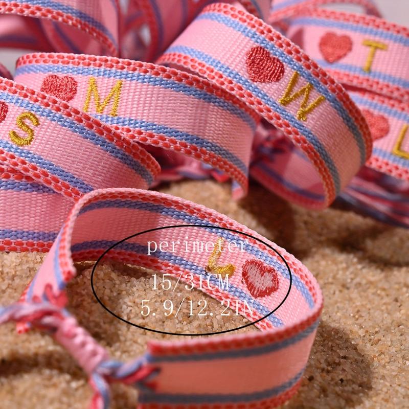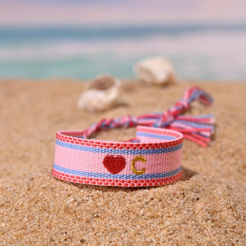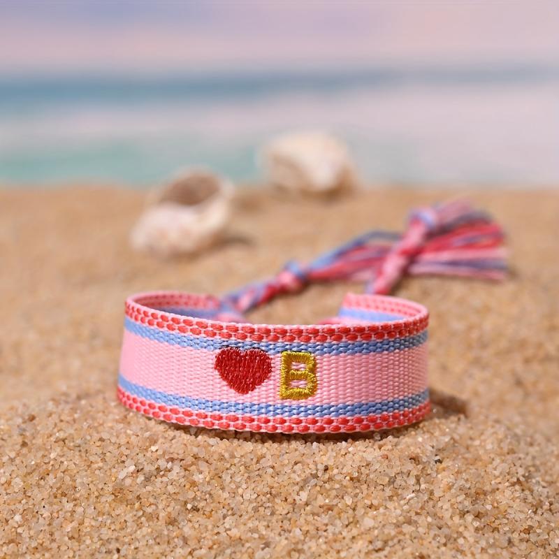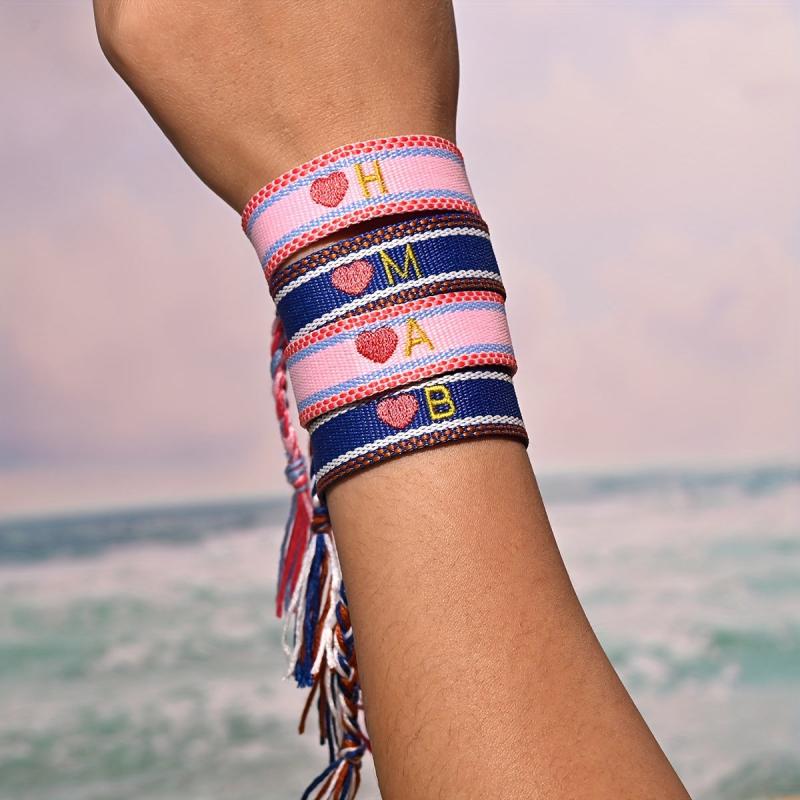 Trendy European and American wristbands for men and women, featuring embroidered love letters and surnames with tassels.
