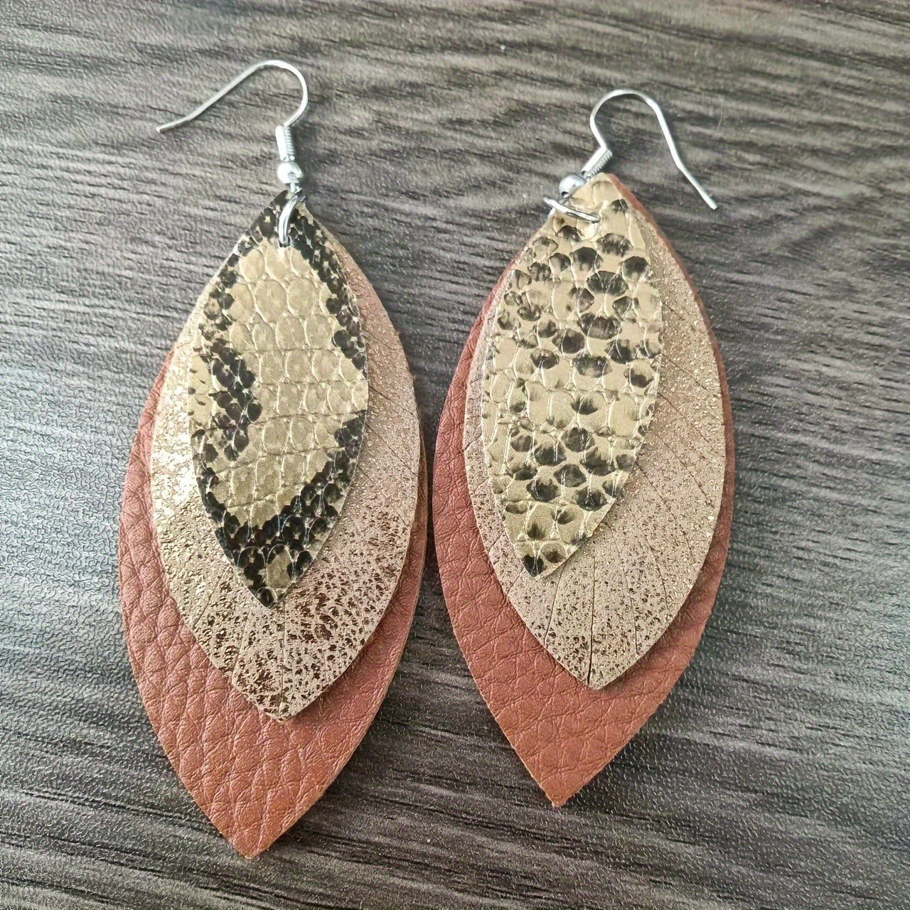 These cross border earrings are crafted from PU leather, featuring a unique leaf shape design. They are a stylish accessory that can be worn for various occasions.