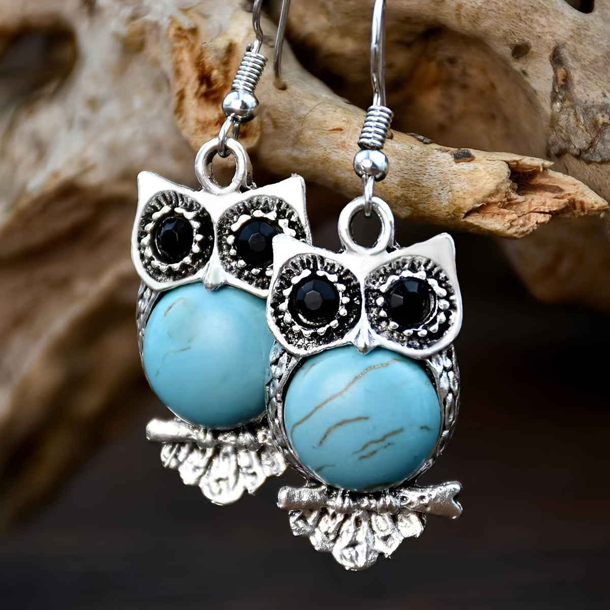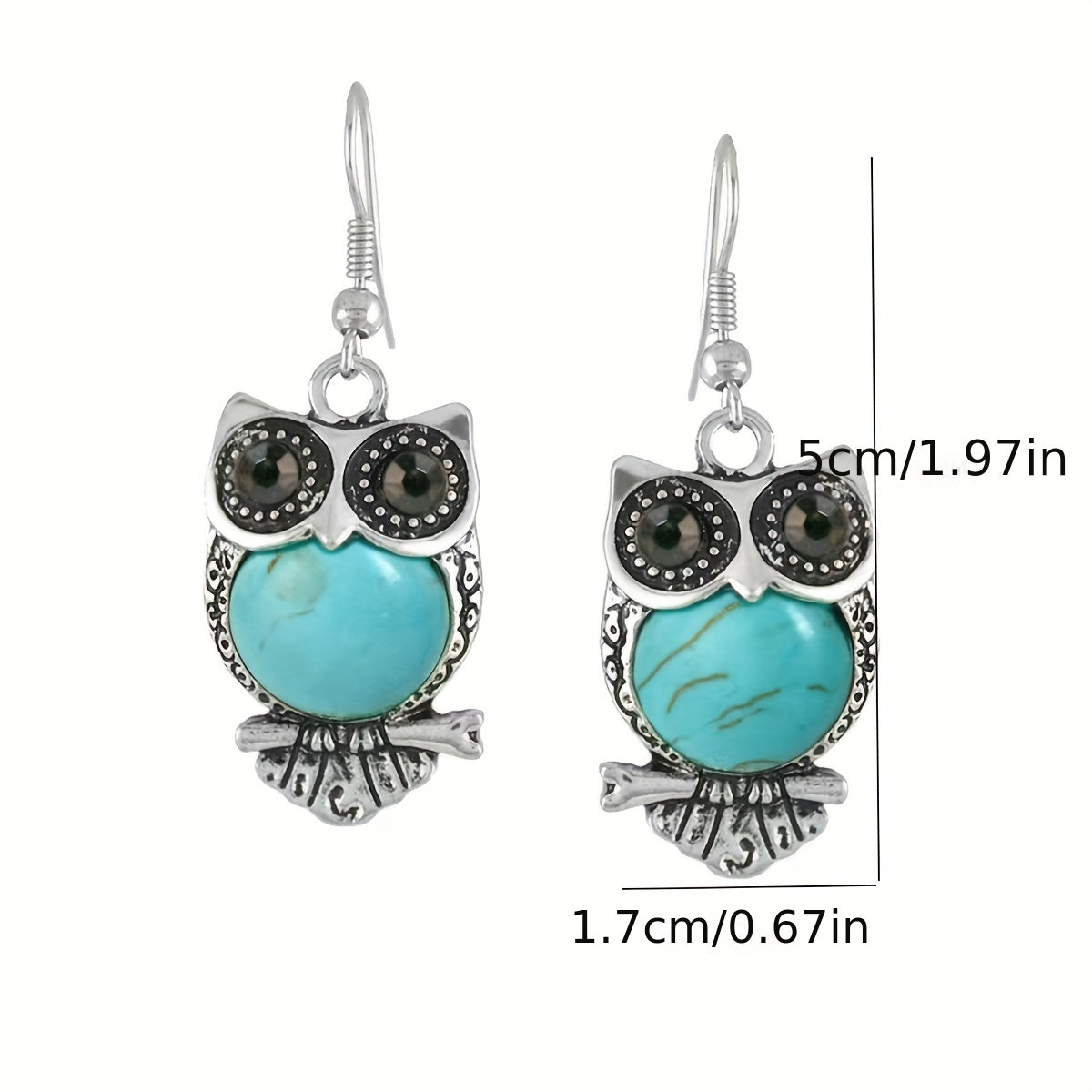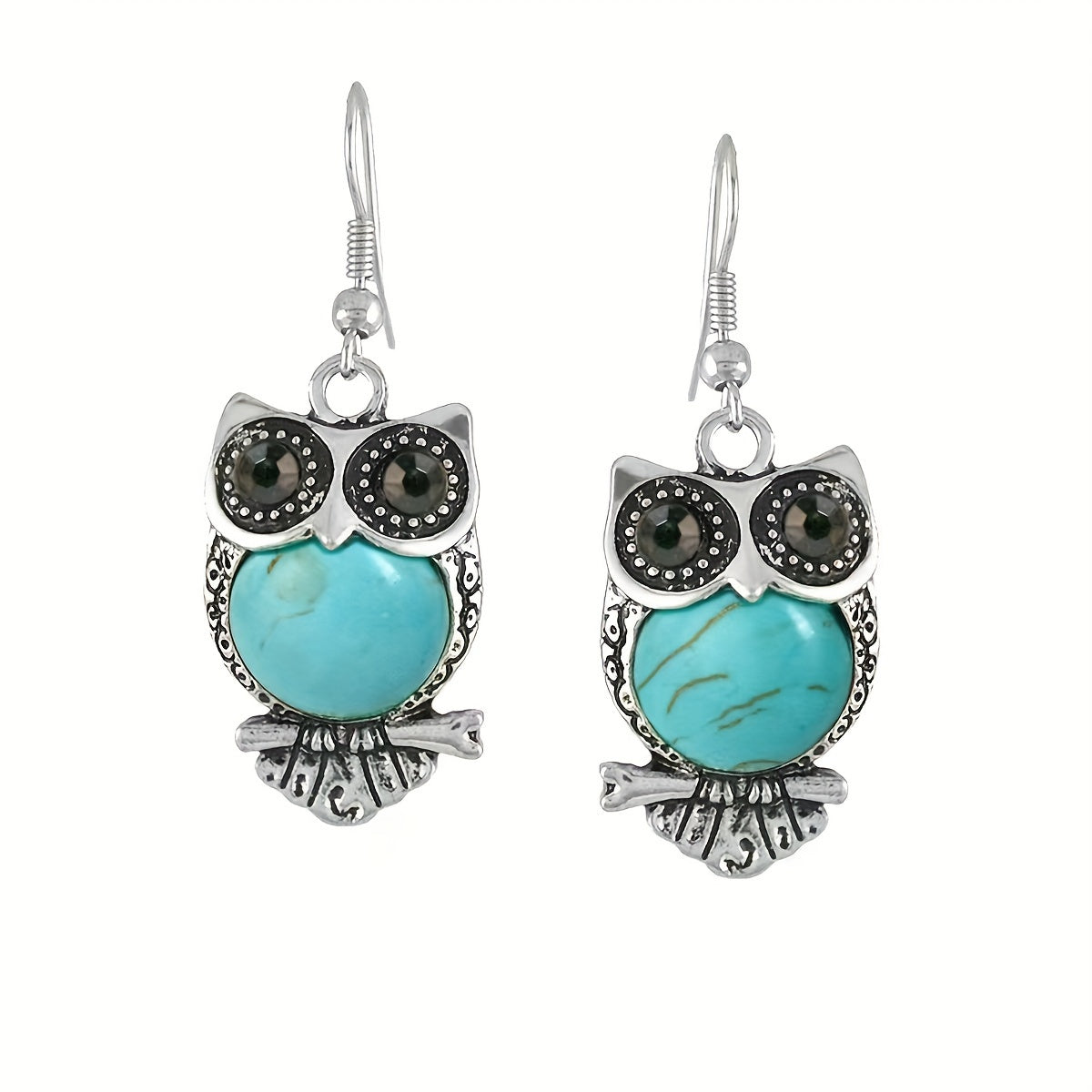Stylish unisex turquoise earrings suitable for daily wear. These owl and cat head dangle earrings have a retro vibe that adds personality to any outfit.