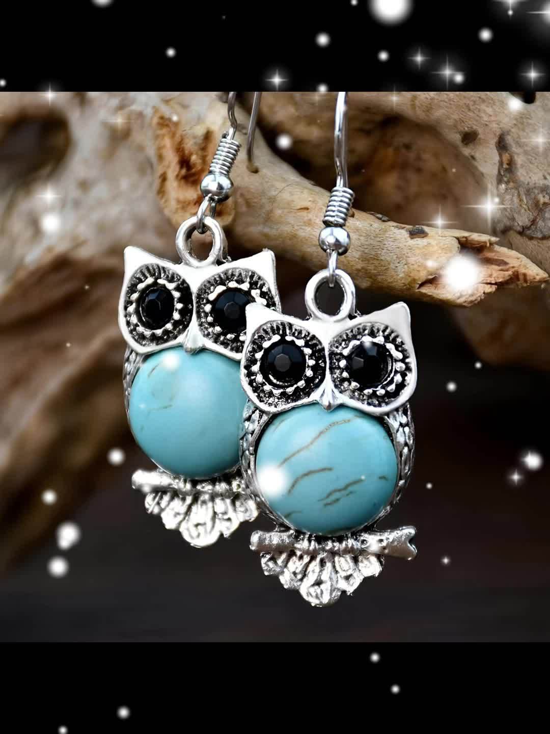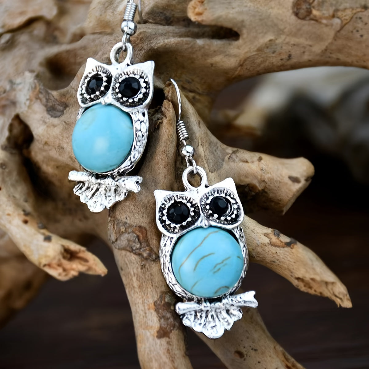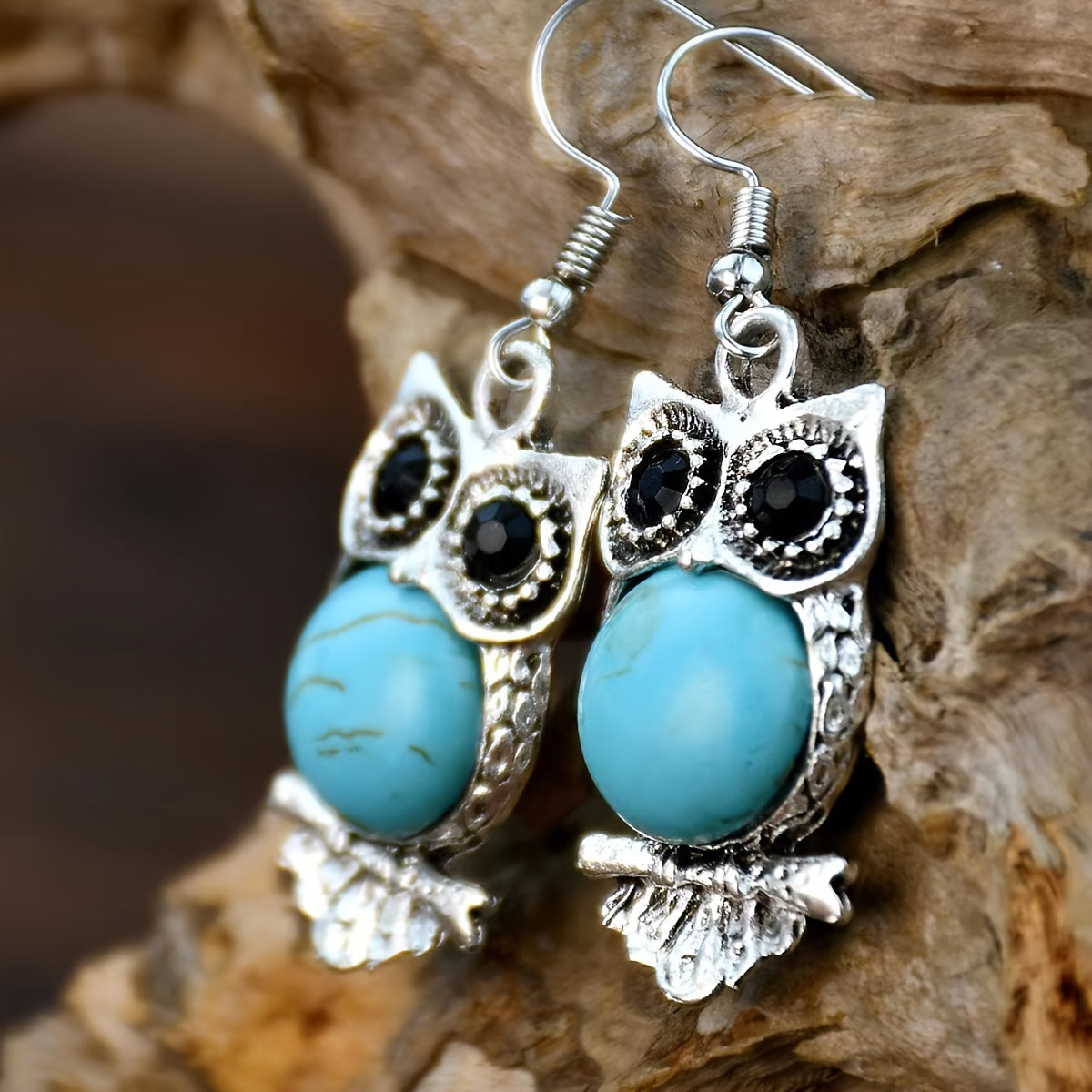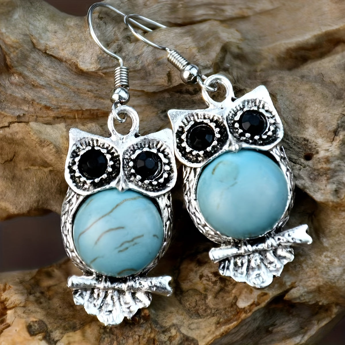 Stylish unisex turquoise earrings suitable for daily wear. These owl and cat head dangle earrings have a retro vibe that adds personality to any outfit.
