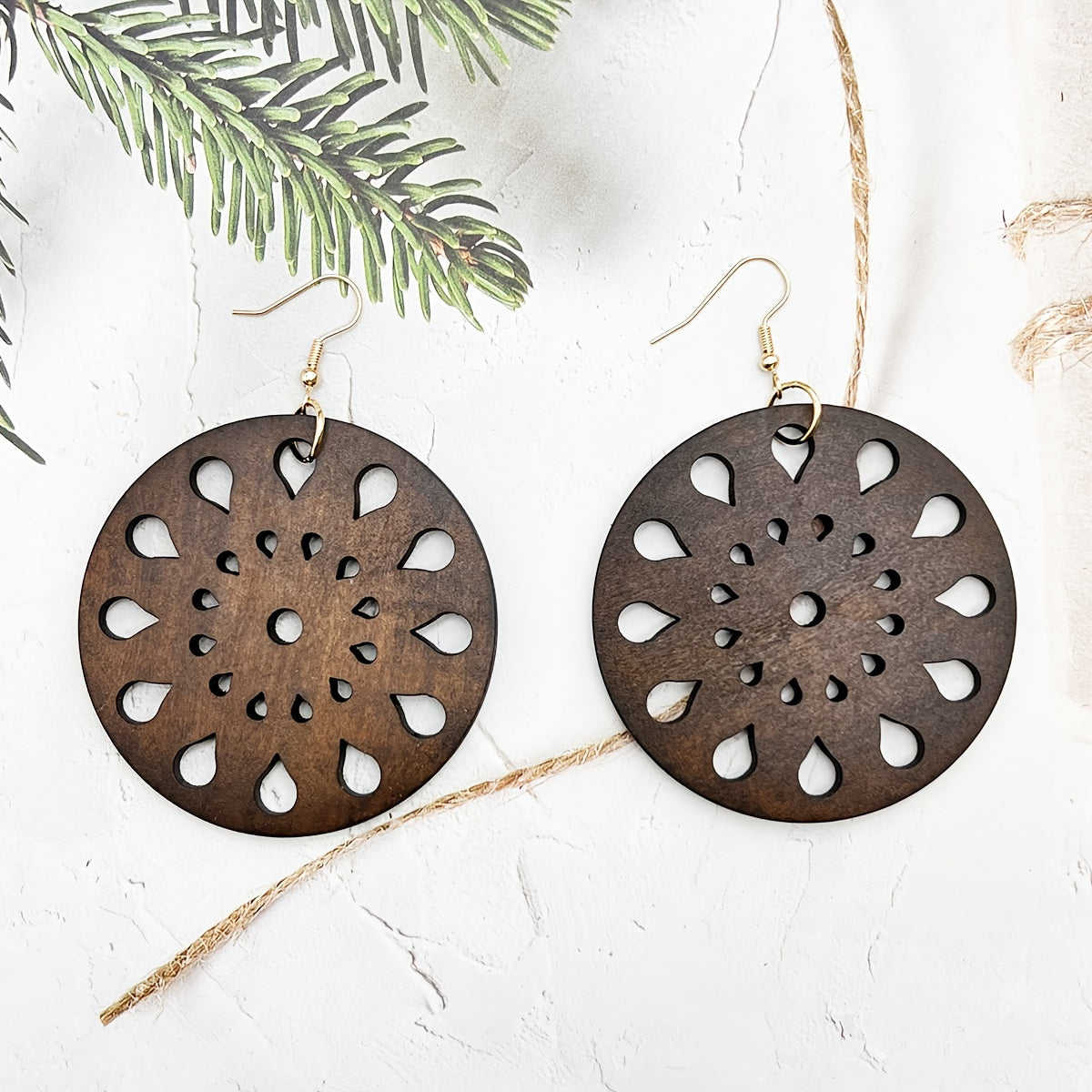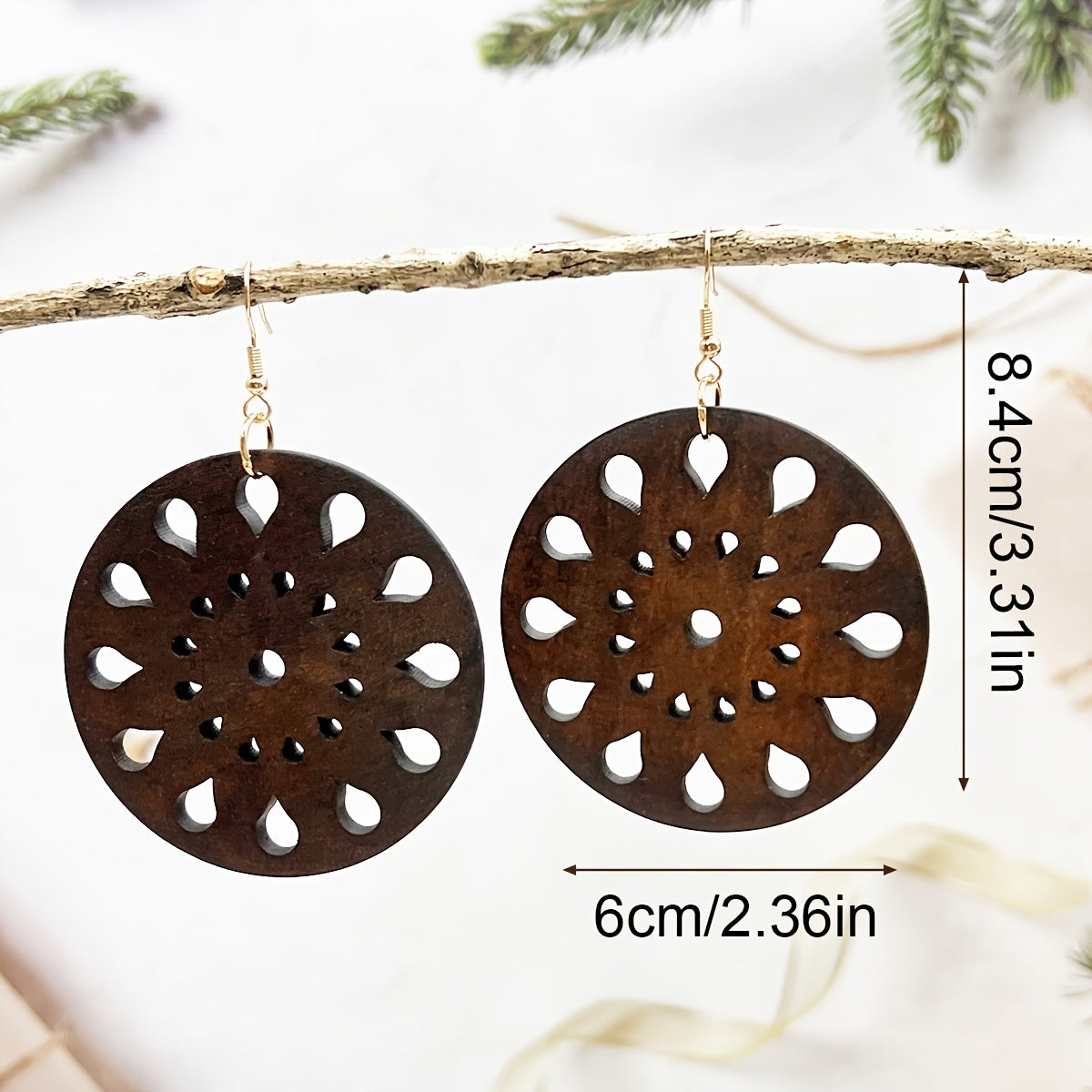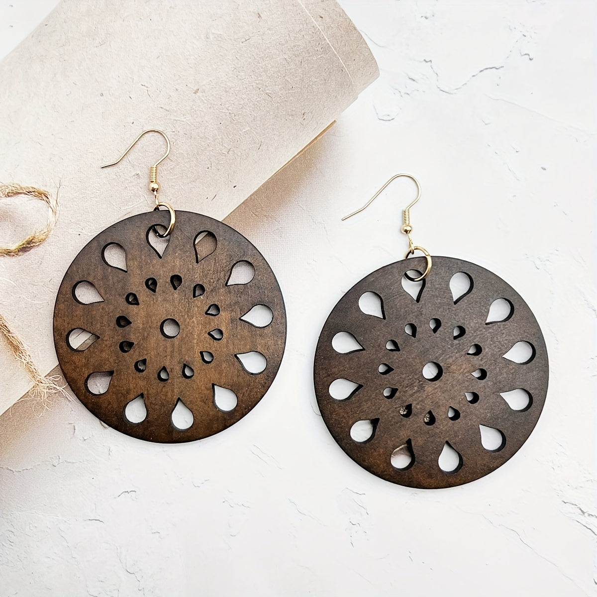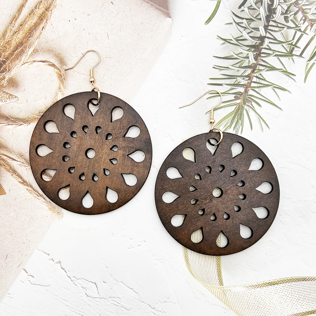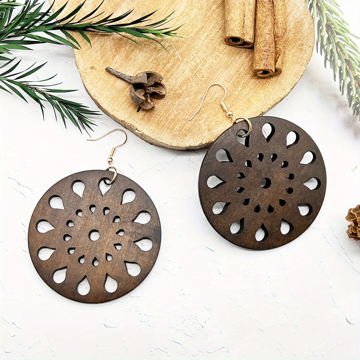 Exaggerated Retro Large Round Hollow Wood Earrings