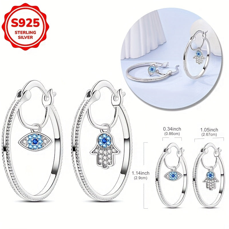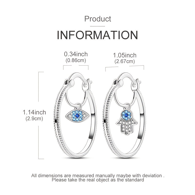 Enhance your style with these eye-shaped pendant earrings made of 925 sterling silver with synthetic zirconia inlay.