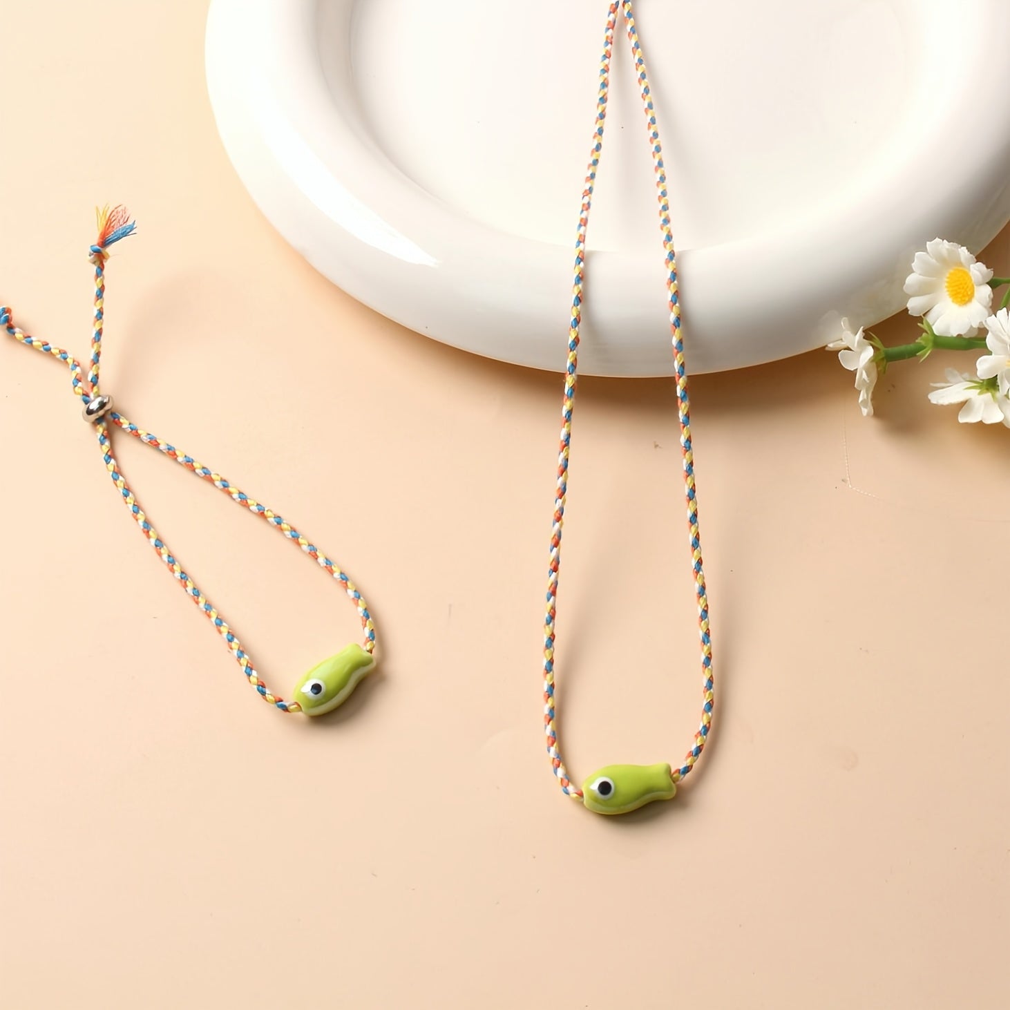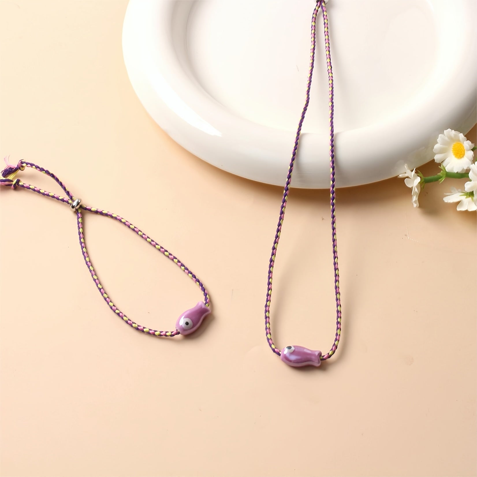 - Includes a fish pendant necklace and bracelet