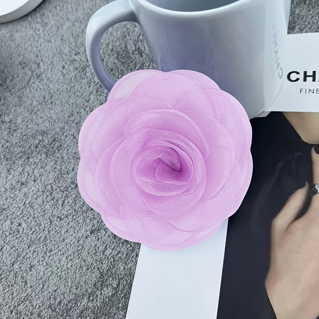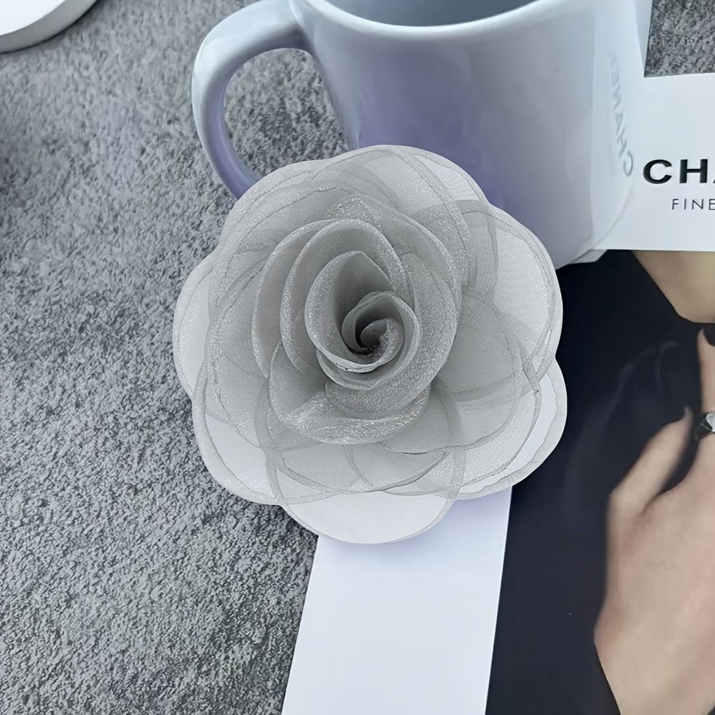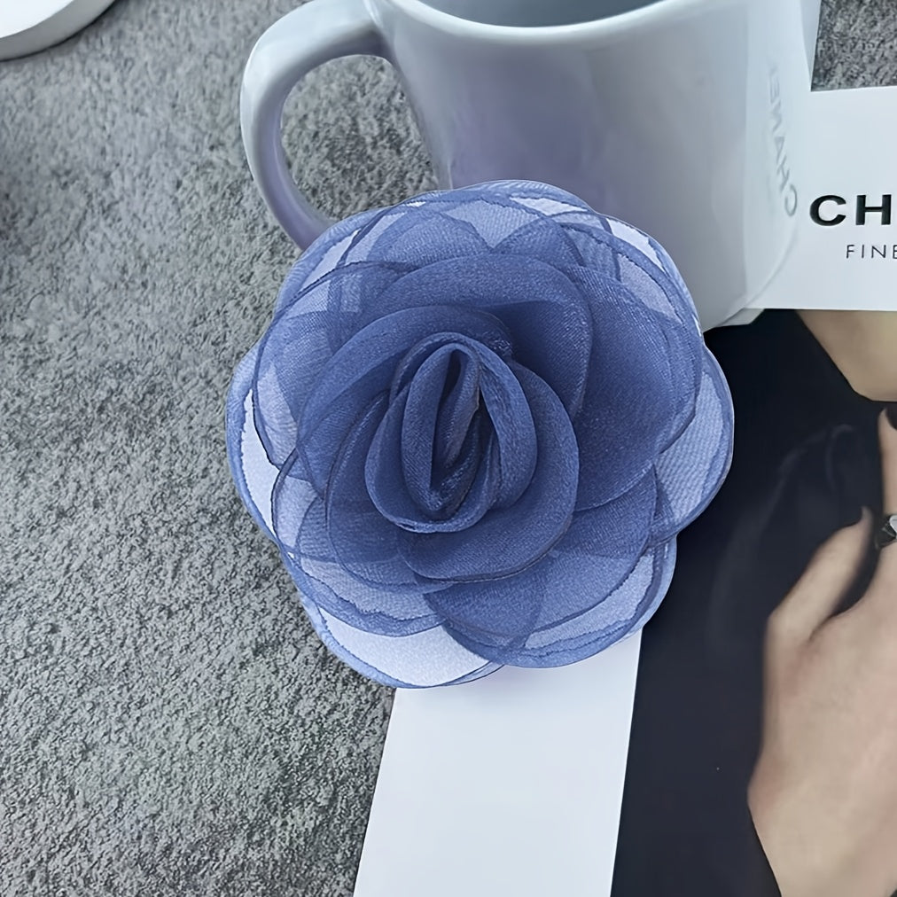 This handcrafted fabric brooch features a delicate floral design made from polyester fiber. It is a versatile accessory to decorate hats, clothing, and more with a touch of elegance.