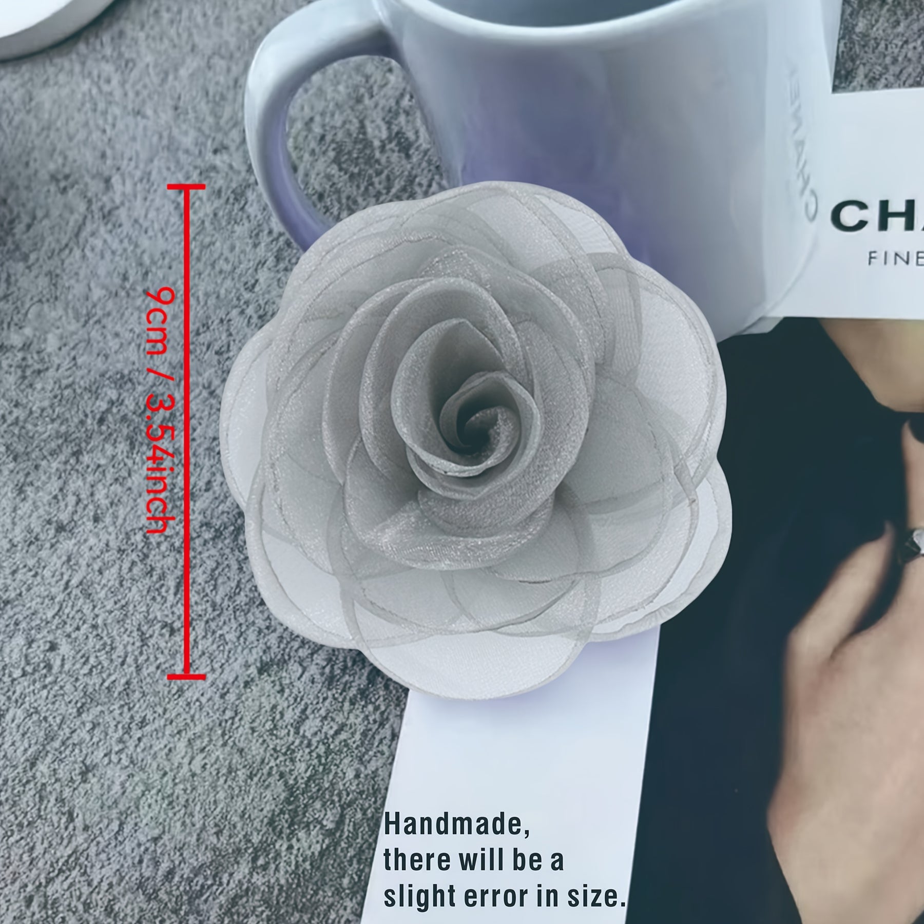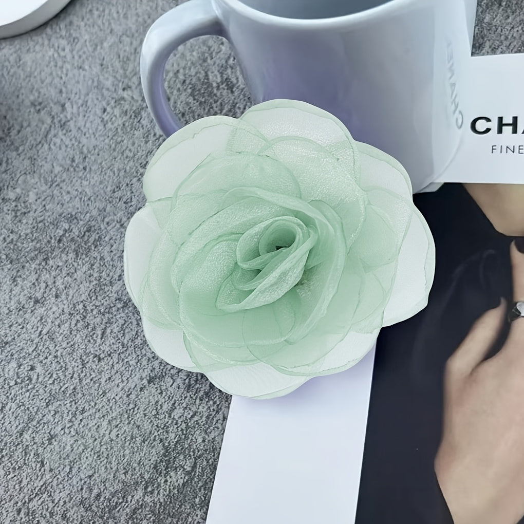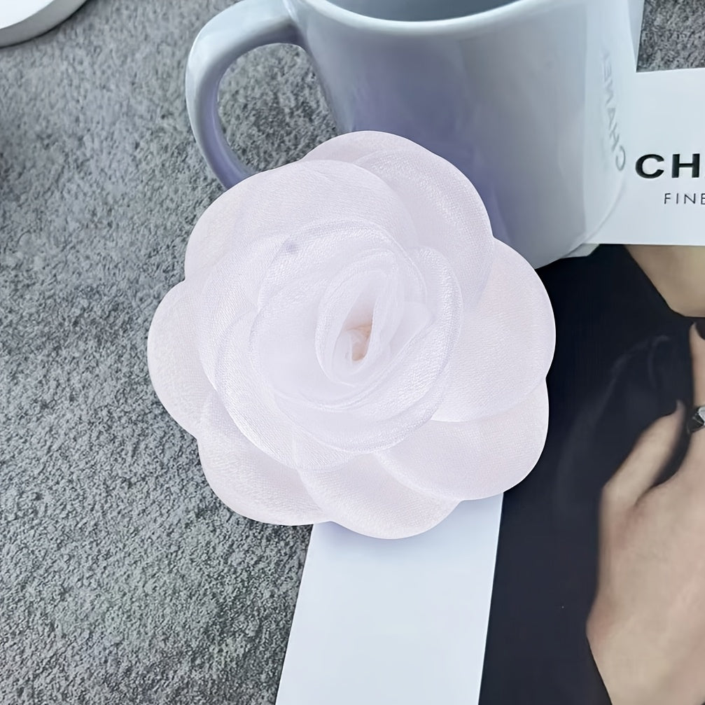 This handcrafted fabric brooch features a delicate floral design made from polyester fiber. It is a versatile accessory to decorate hats, clothing, and more with a touch of elegance.