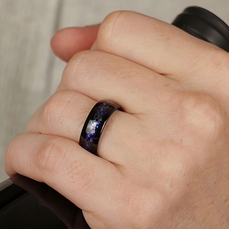 This stunning stainless steel ring features a galaxy design with resin inlay. It is the ideal gift for birthdays or for couples celebrating a special occasion.