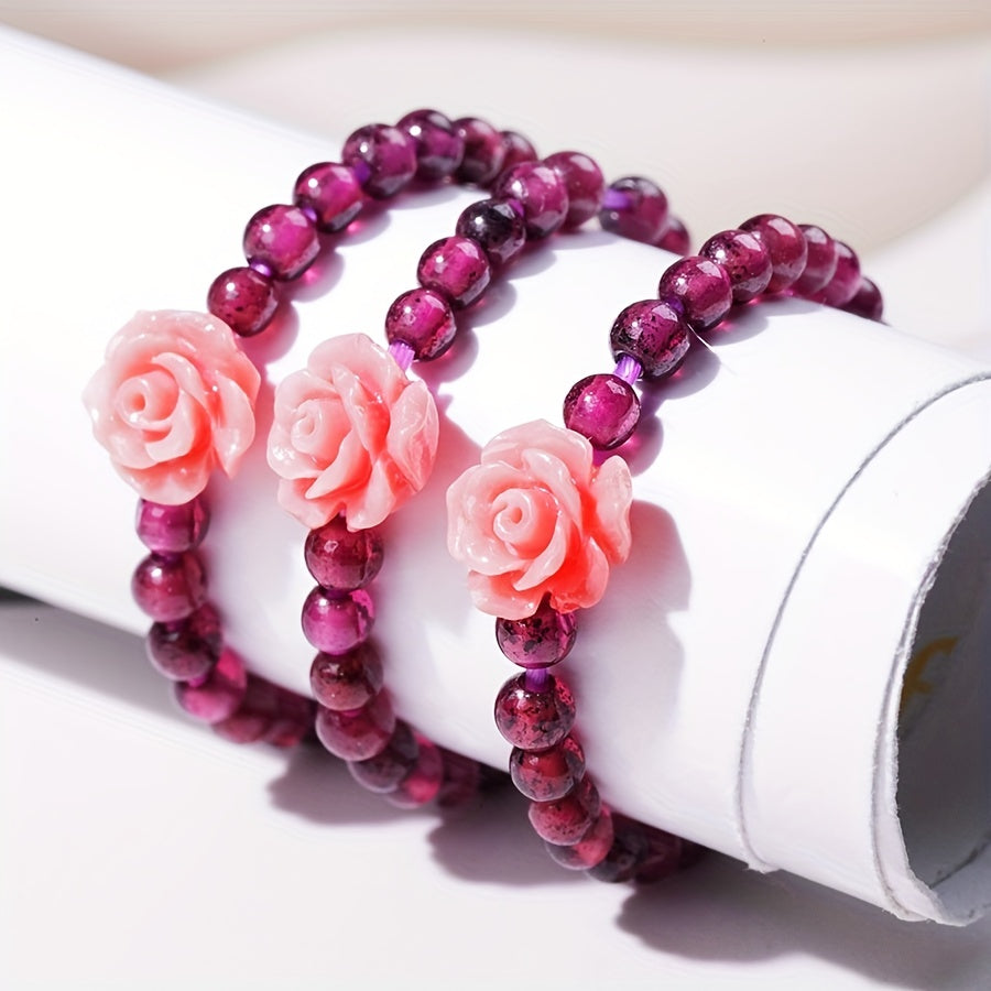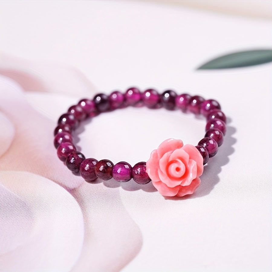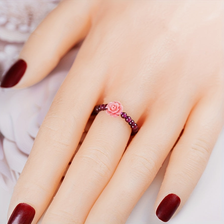 This beautiful natural garnet beaded ring is perfect for girls and women. It features a stretch design for comfortable wear.