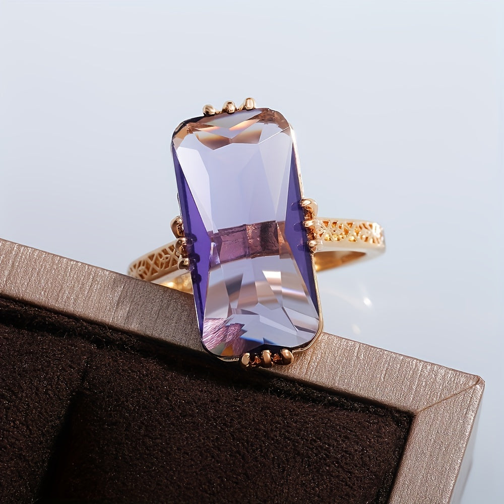 This stunning women's wedding ring features a geometric design crafted in copper with synthetic zirconia. It's an all-season fit, gift-ready piece that offers versatile sizing from 6 to 11.