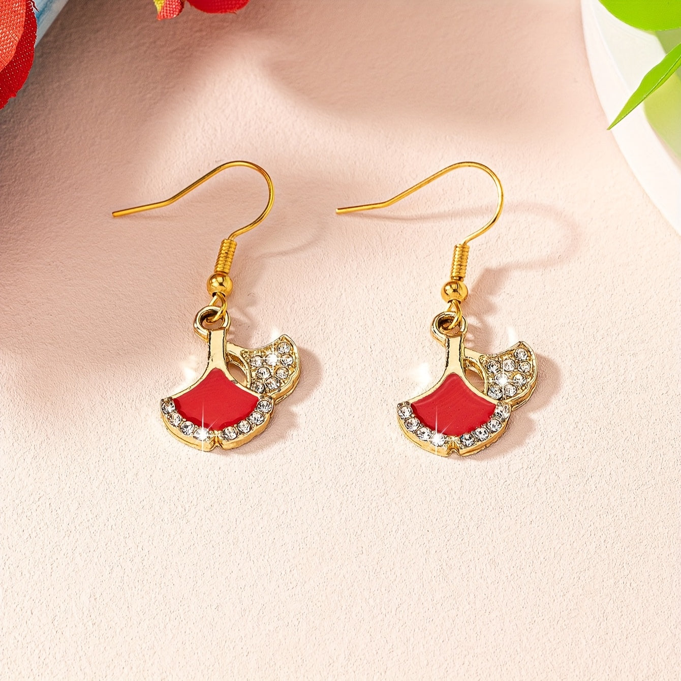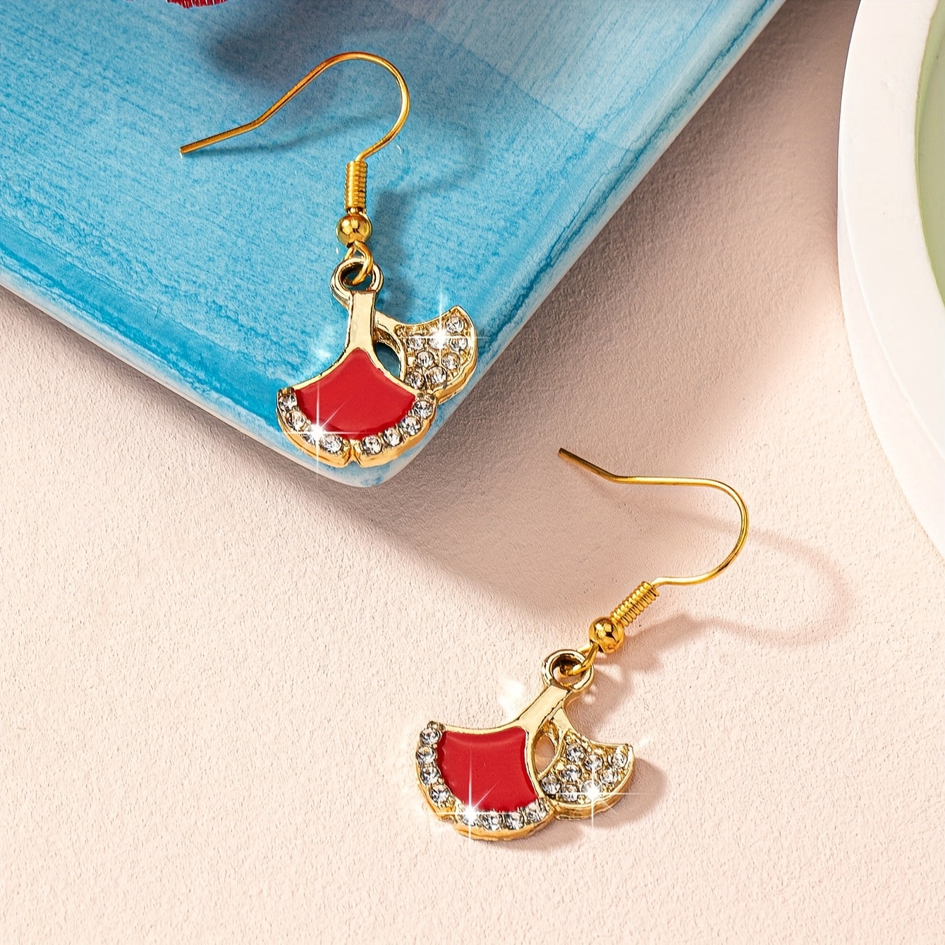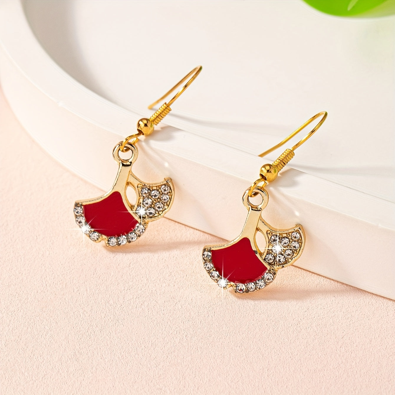 Add a touch of style to your outfit with these geometric fan-shaped earrings featuring red enamel accents. Perfect for everyday wear or special occasions, these earrings are made of high-quality zinc alloy and plated with KC gold.