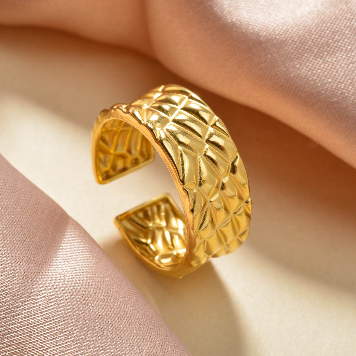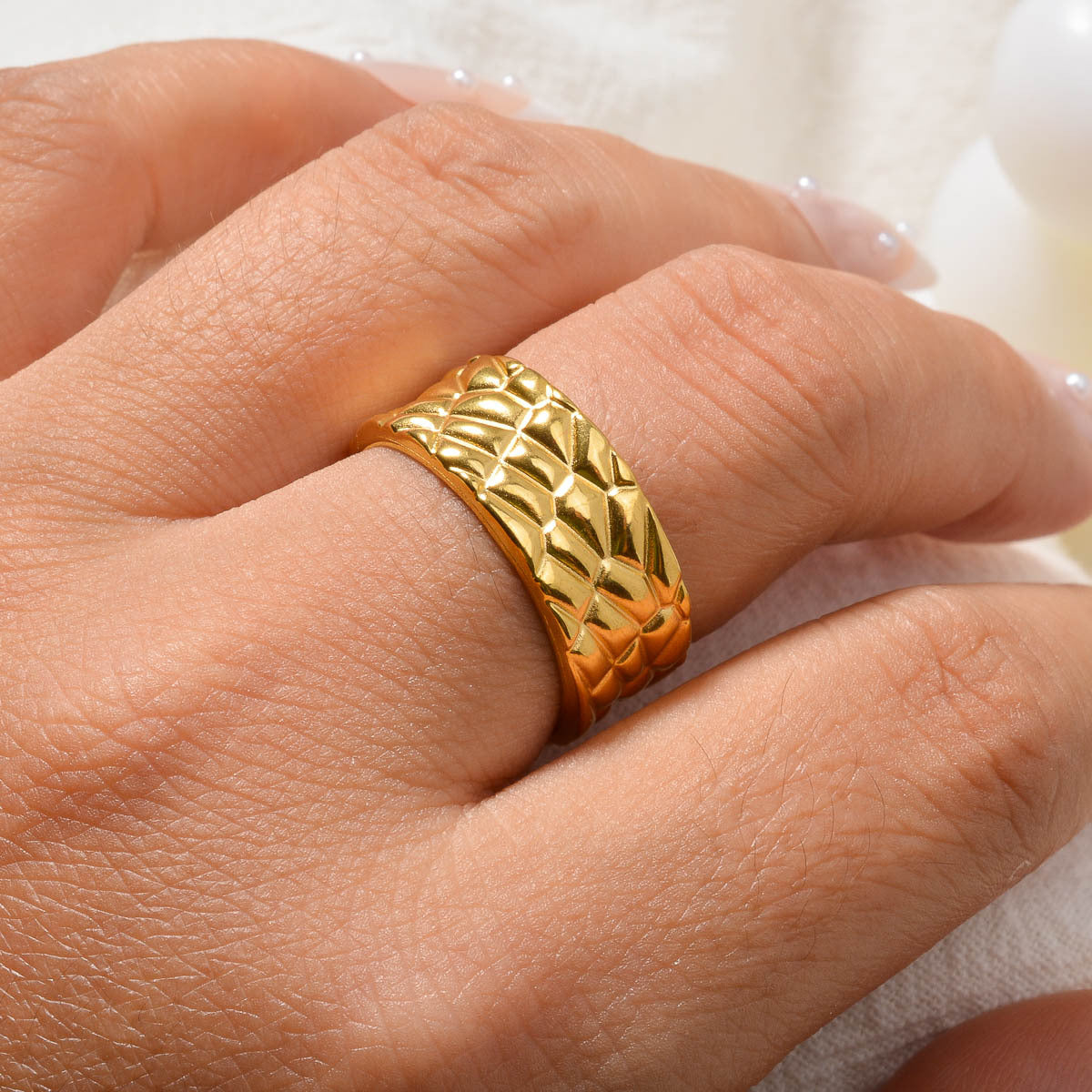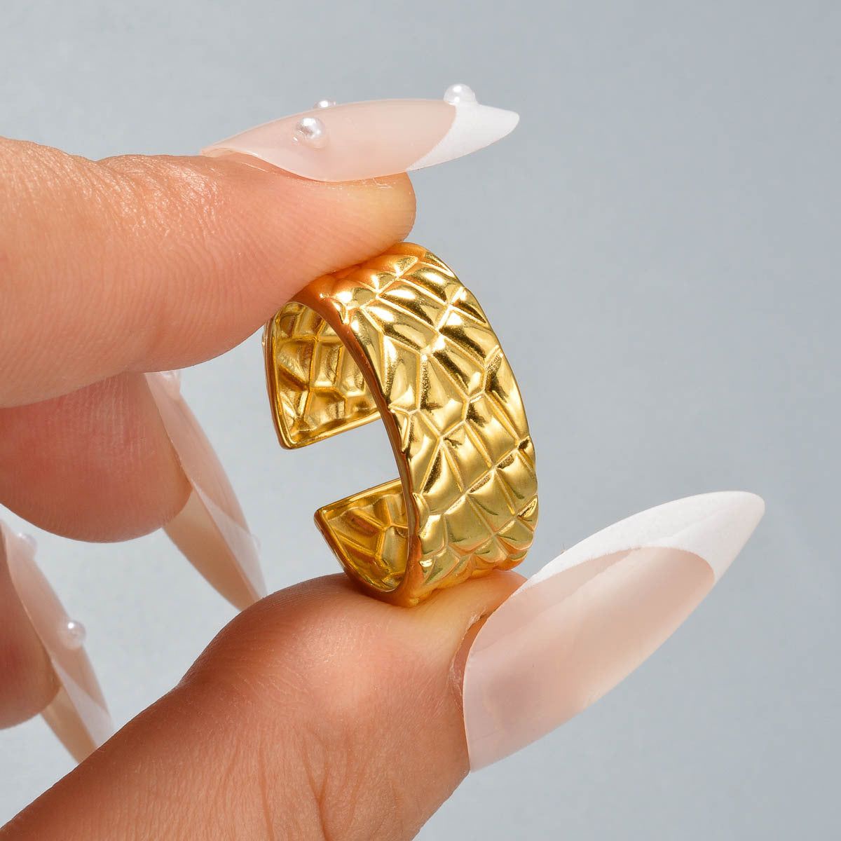 Geometric Hammered Stainless Steel Ring - Modern Minimalist Unisex
