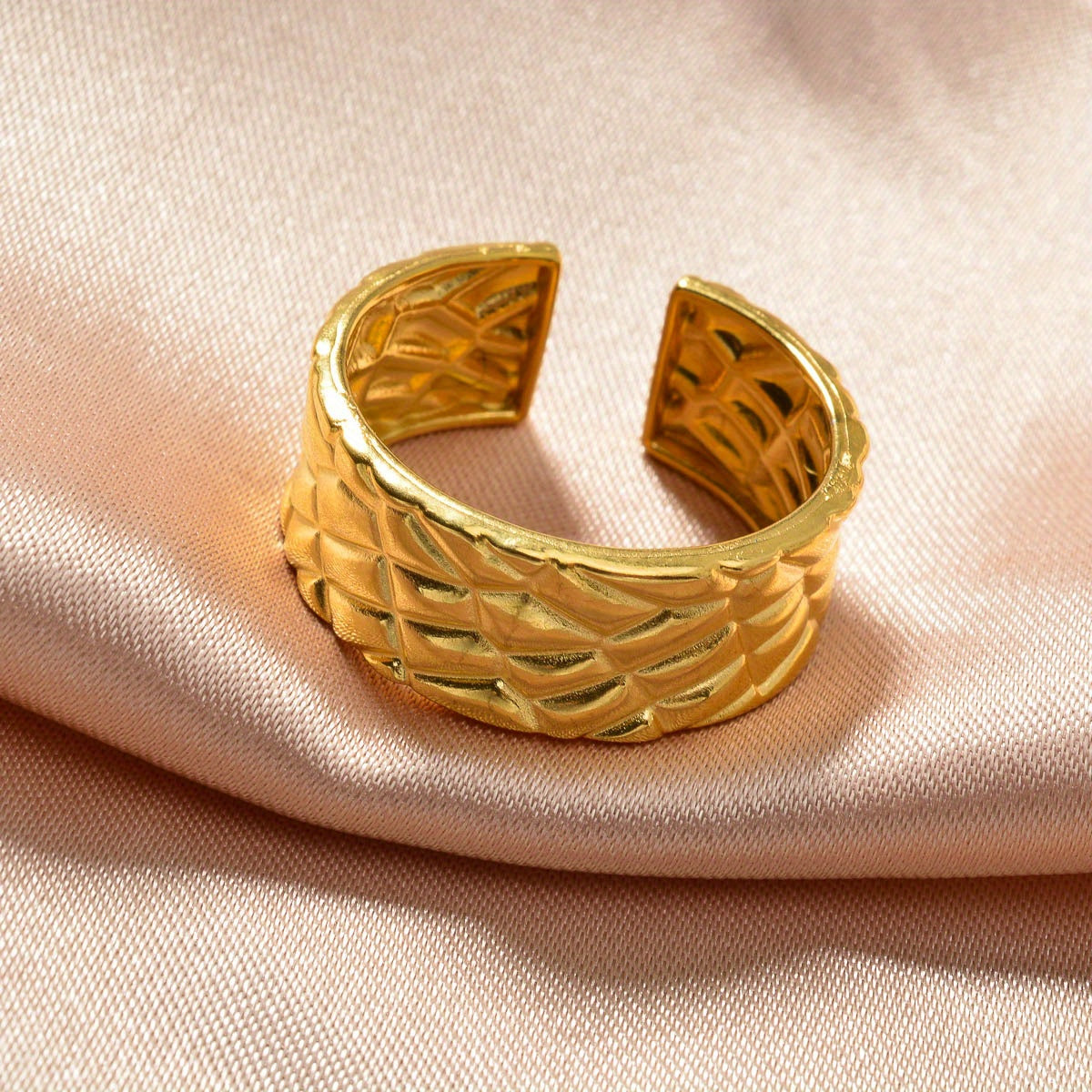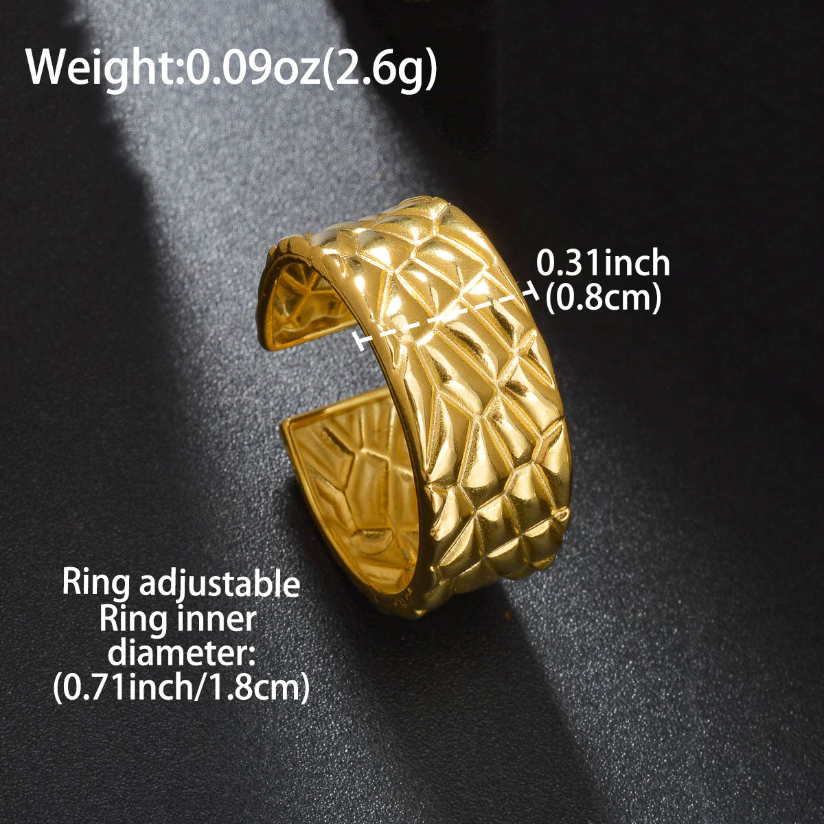 This stainless steel ring features a hammered texture and a polished finish, making it a versatile accessory for both men and women. Suitable for casual or formal wear.