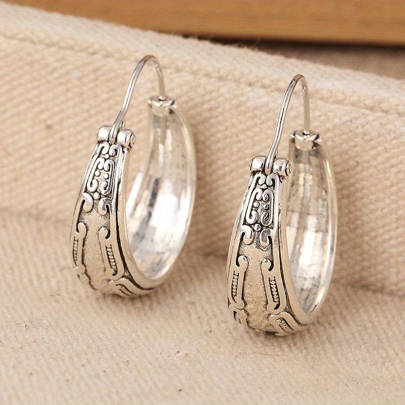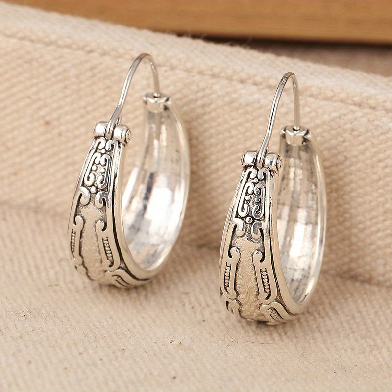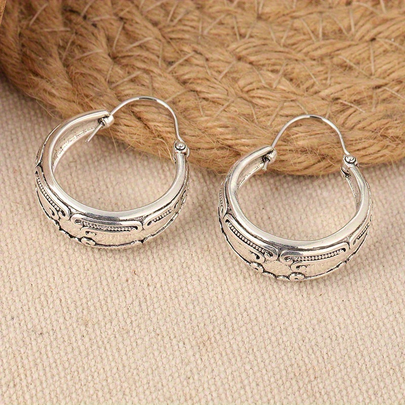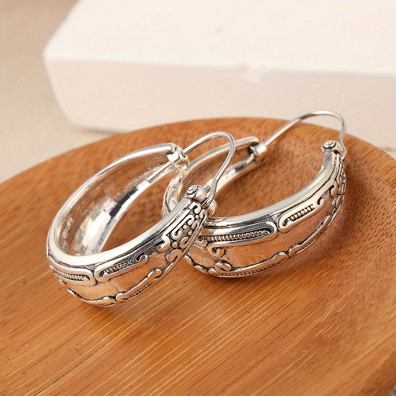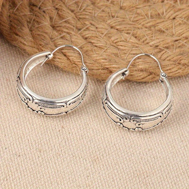 Elevate your style with these chic hoop earrings featuring a unique geometric retro pattern. Made of copper, these earrings are perfect for daily wear and make a great gift for any season.
