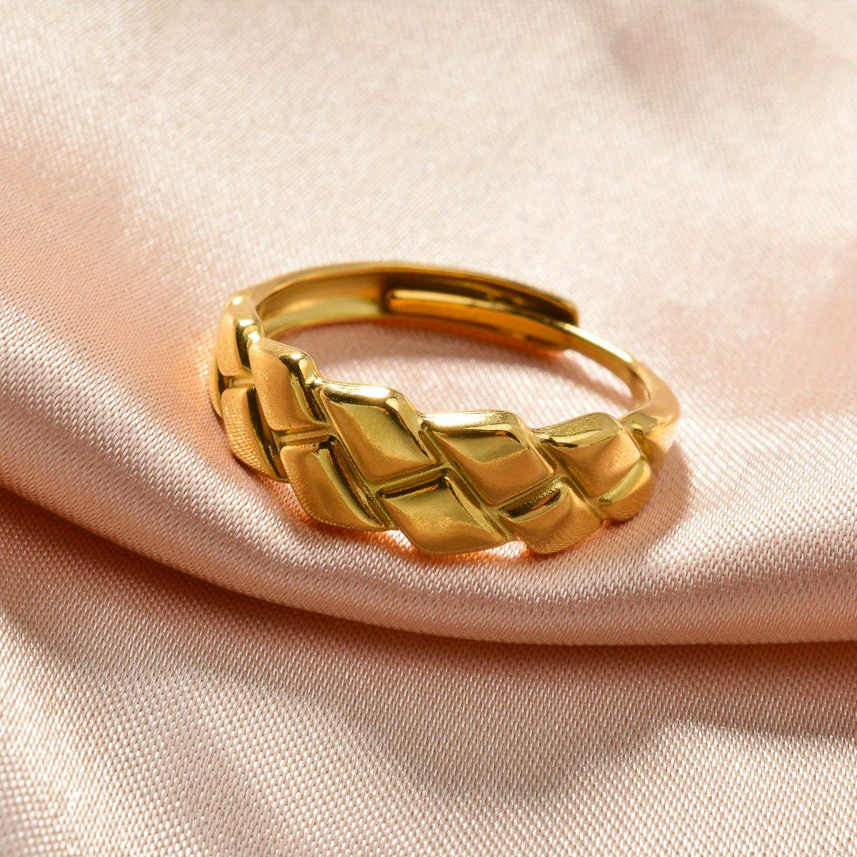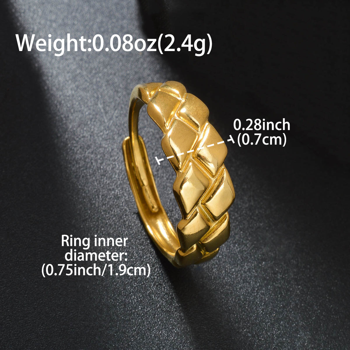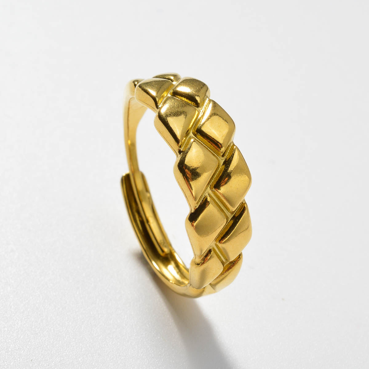 This stainless steel ring features a minimalist geometric textured design that is durable for everyday wear. It is suitable for both casual and formal outfits for men and women.