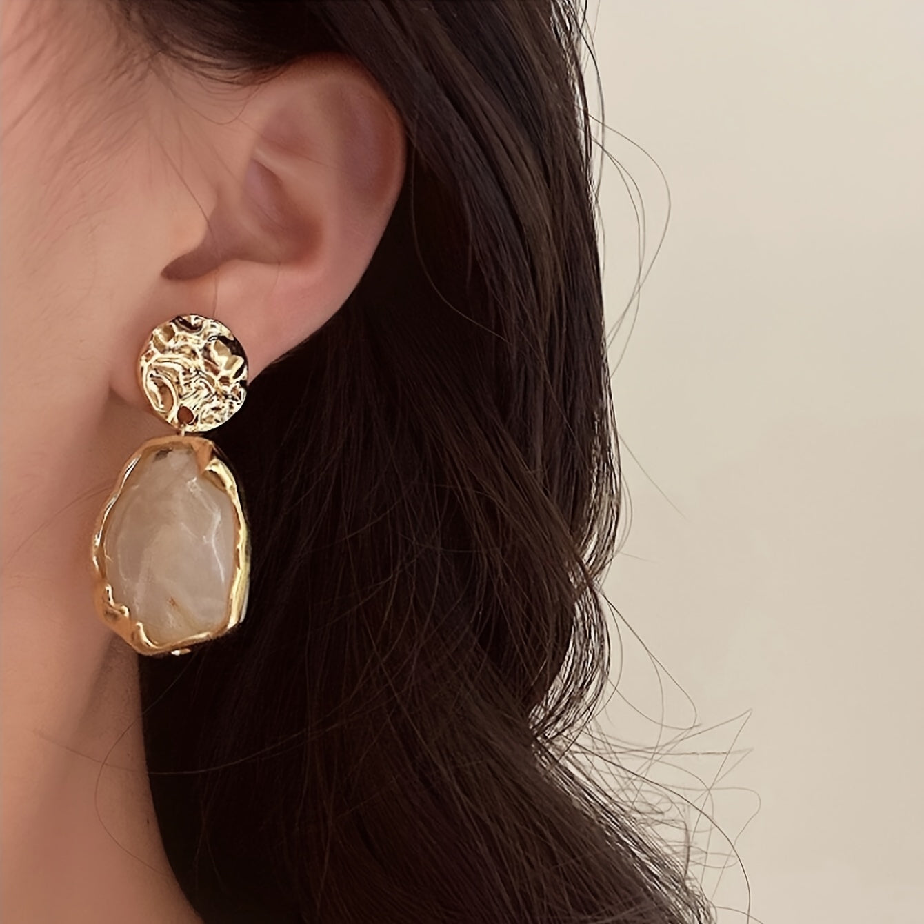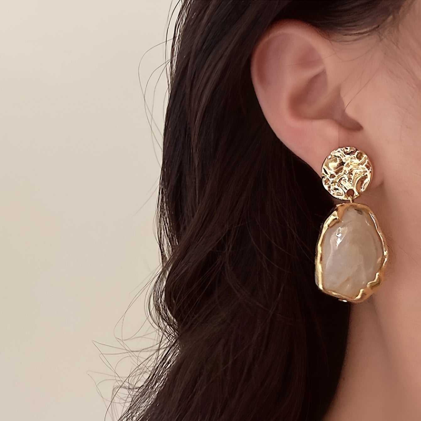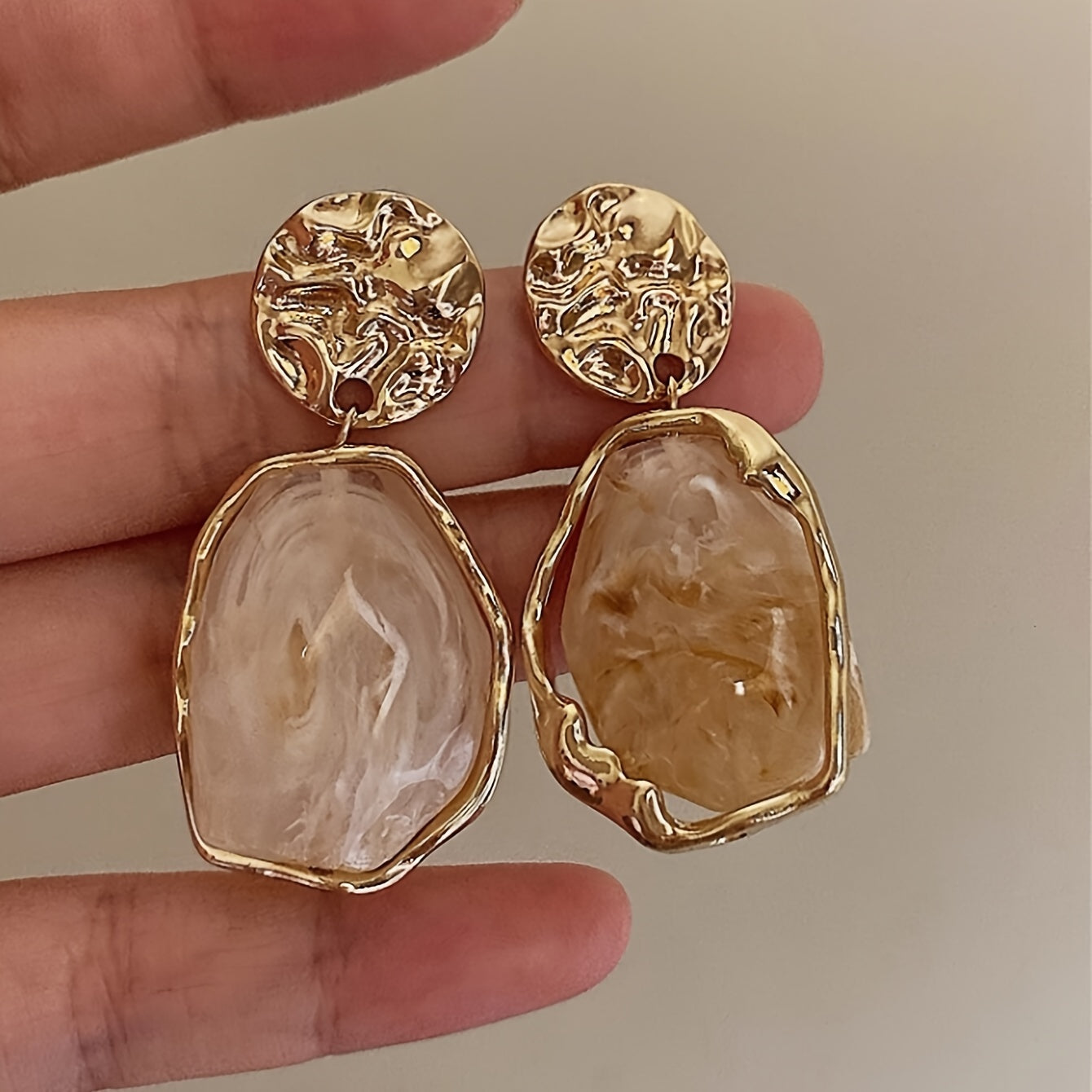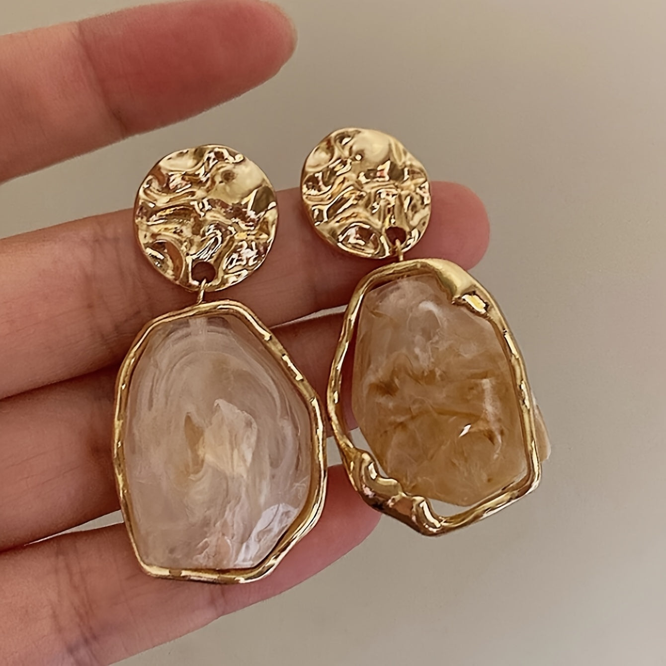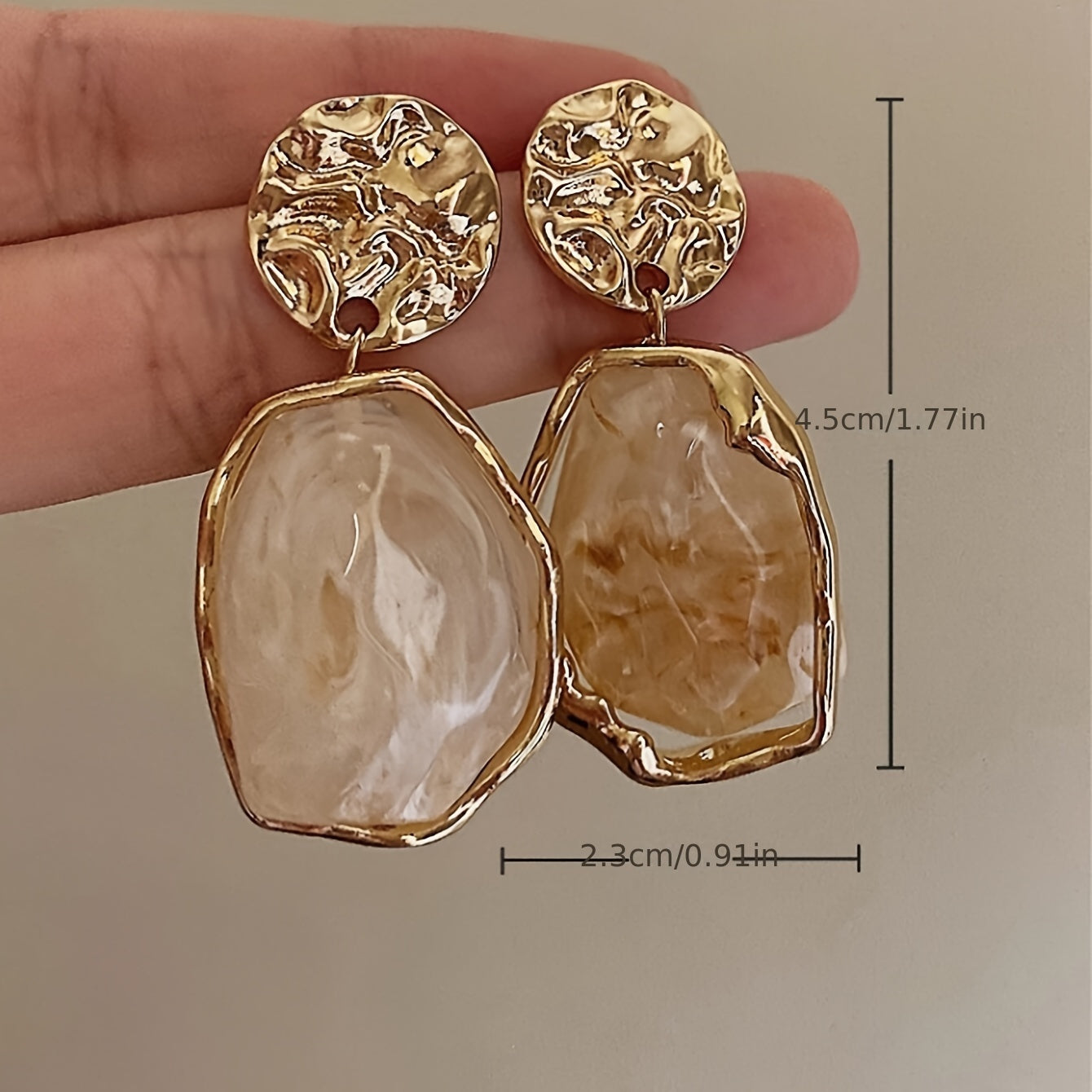 Elevate your style with these vintage-inspired drop earrings featuring geometric textured metal and golden tone accents. Made from zinc alloy with stainless steel posts, these earrings are perfect for daily wear or parties.