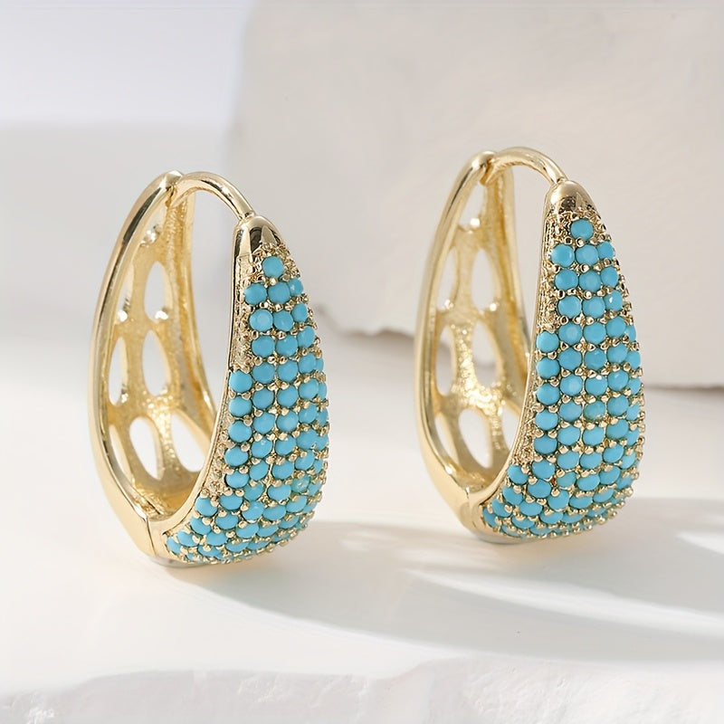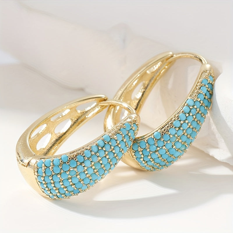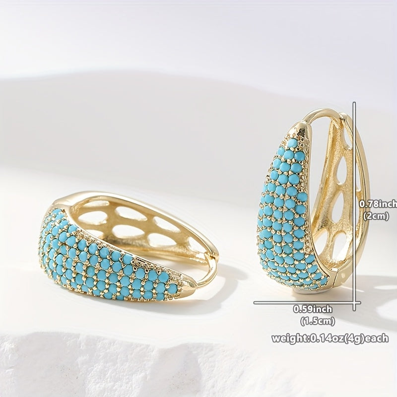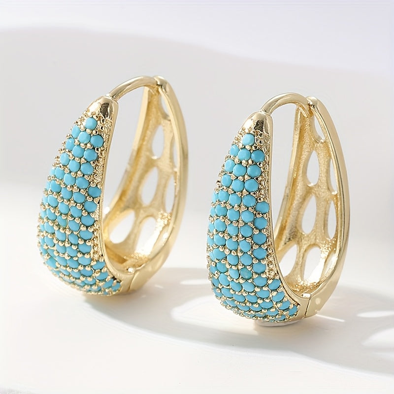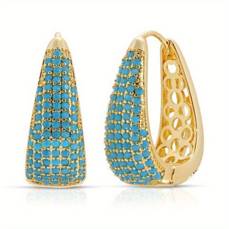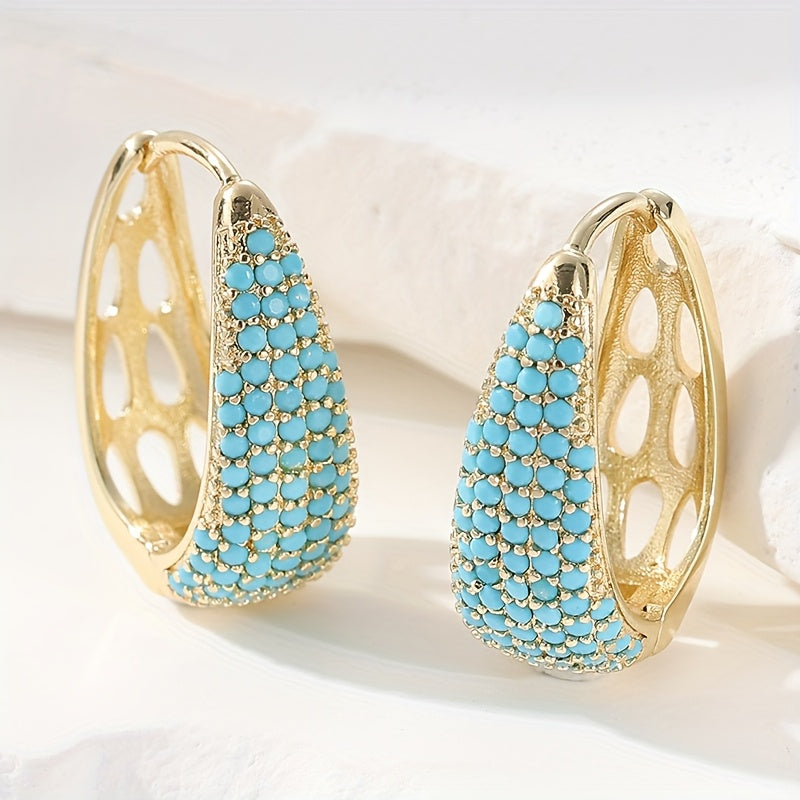 Elegant pair of lightweight pendant earrings featuring turquoise and golden geometric design. Perfect for bohemian vintage style, weddings, bridesmaids, or everyday wear.