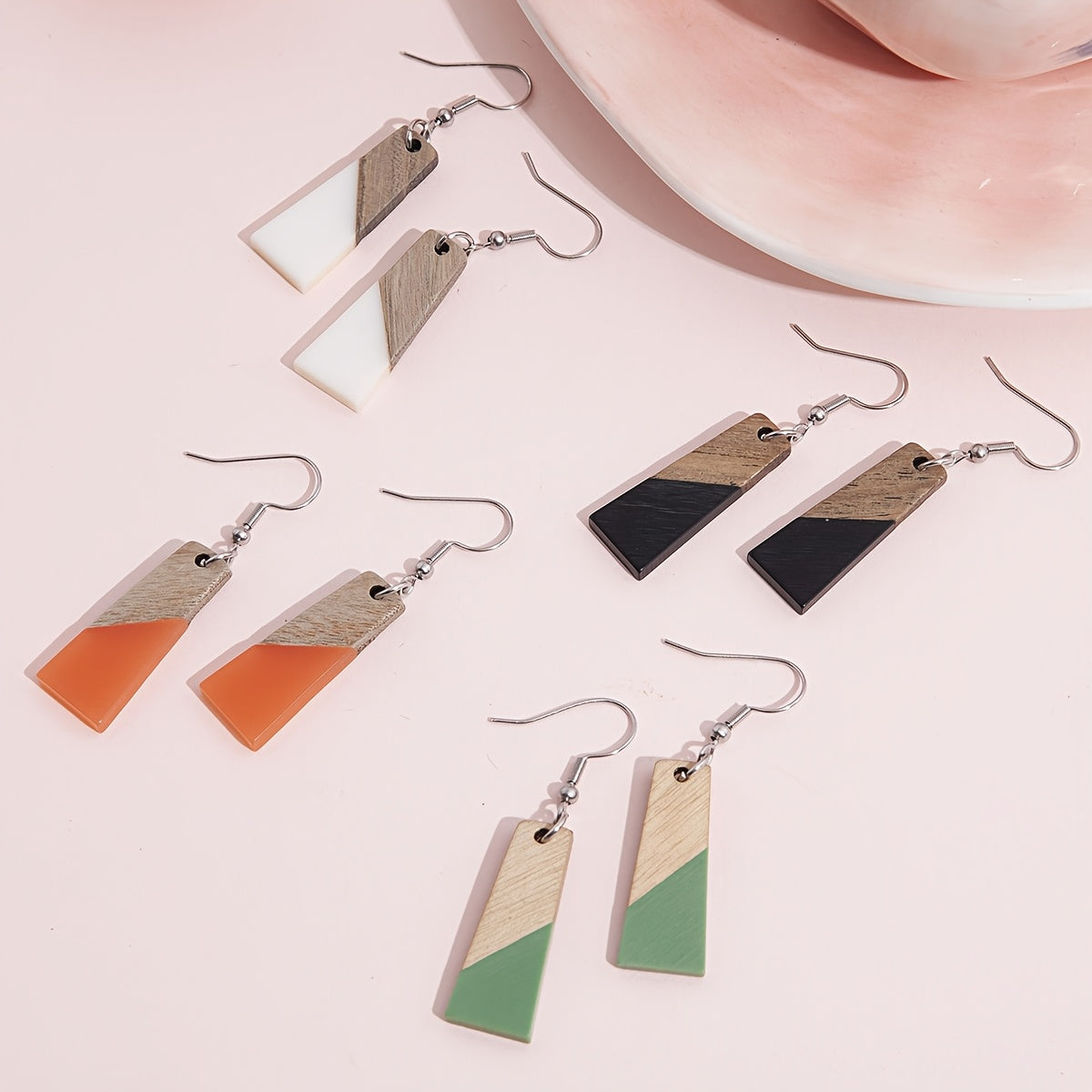 Geometric Wood & Resin Earrings, Ideal Couple's Gift