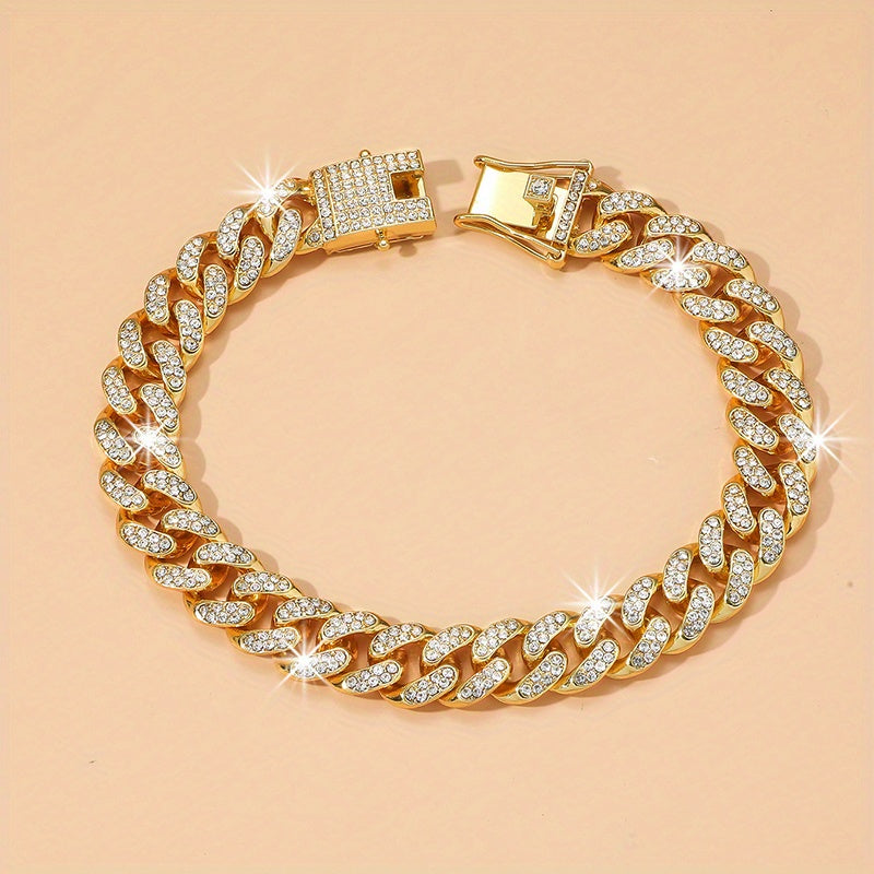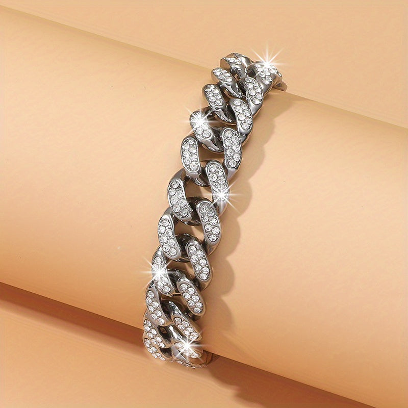 Add some sparkle to your ankles with this hip hop Cuban chain anklet featuring glitter rhinestones. It's a perfect jewelry gift for women who love bling.
