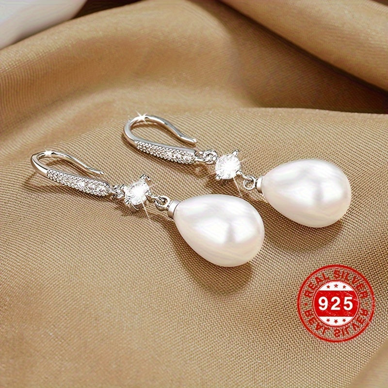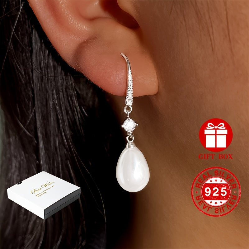 Golden Pearl Earrings 18K Plated 925 Sterling Silver Drop Earrings