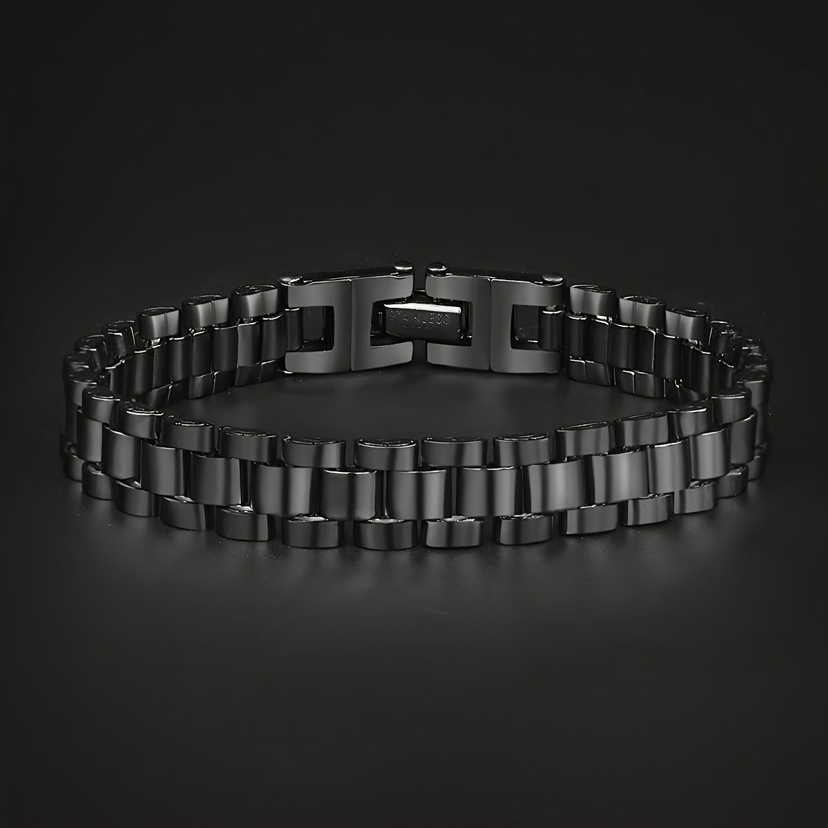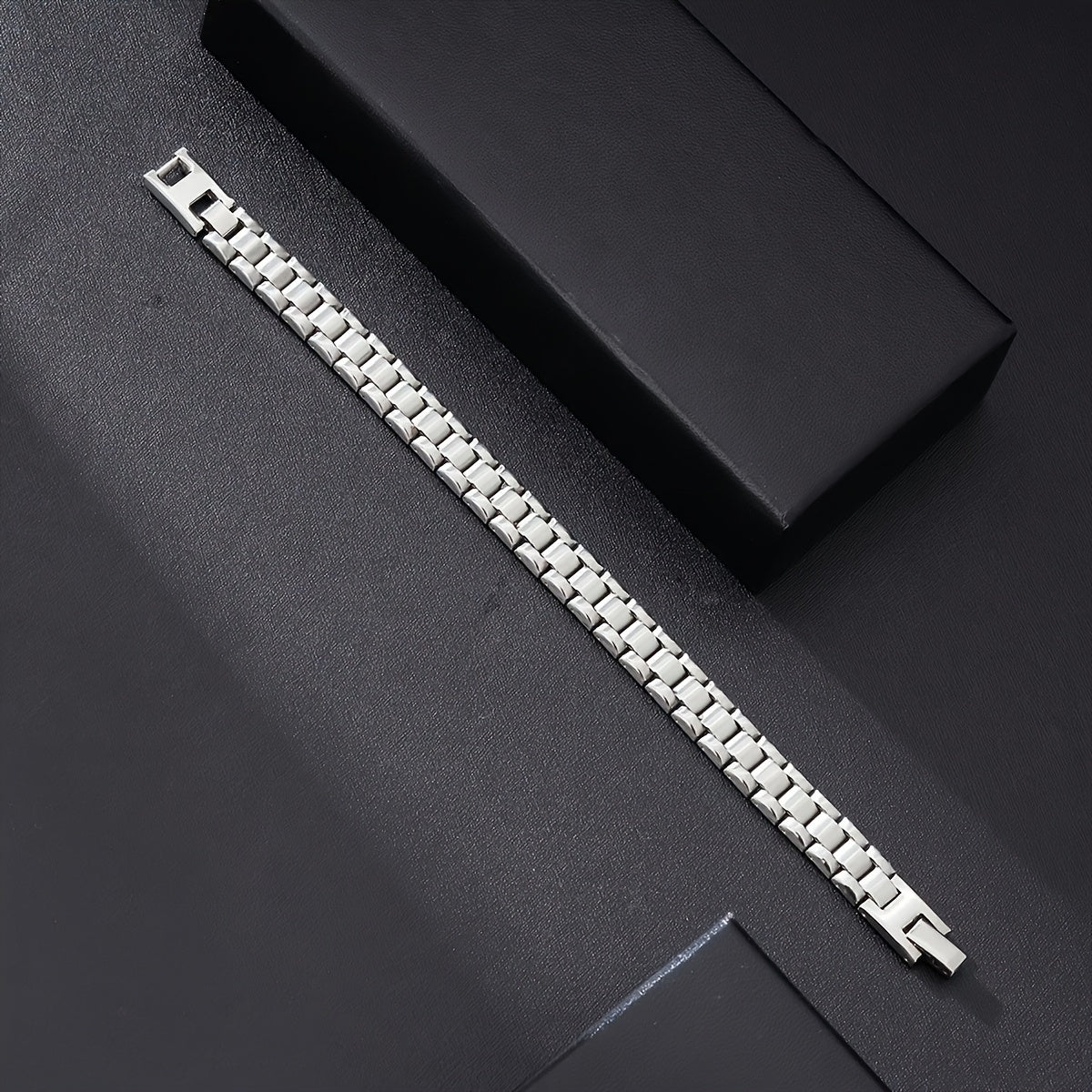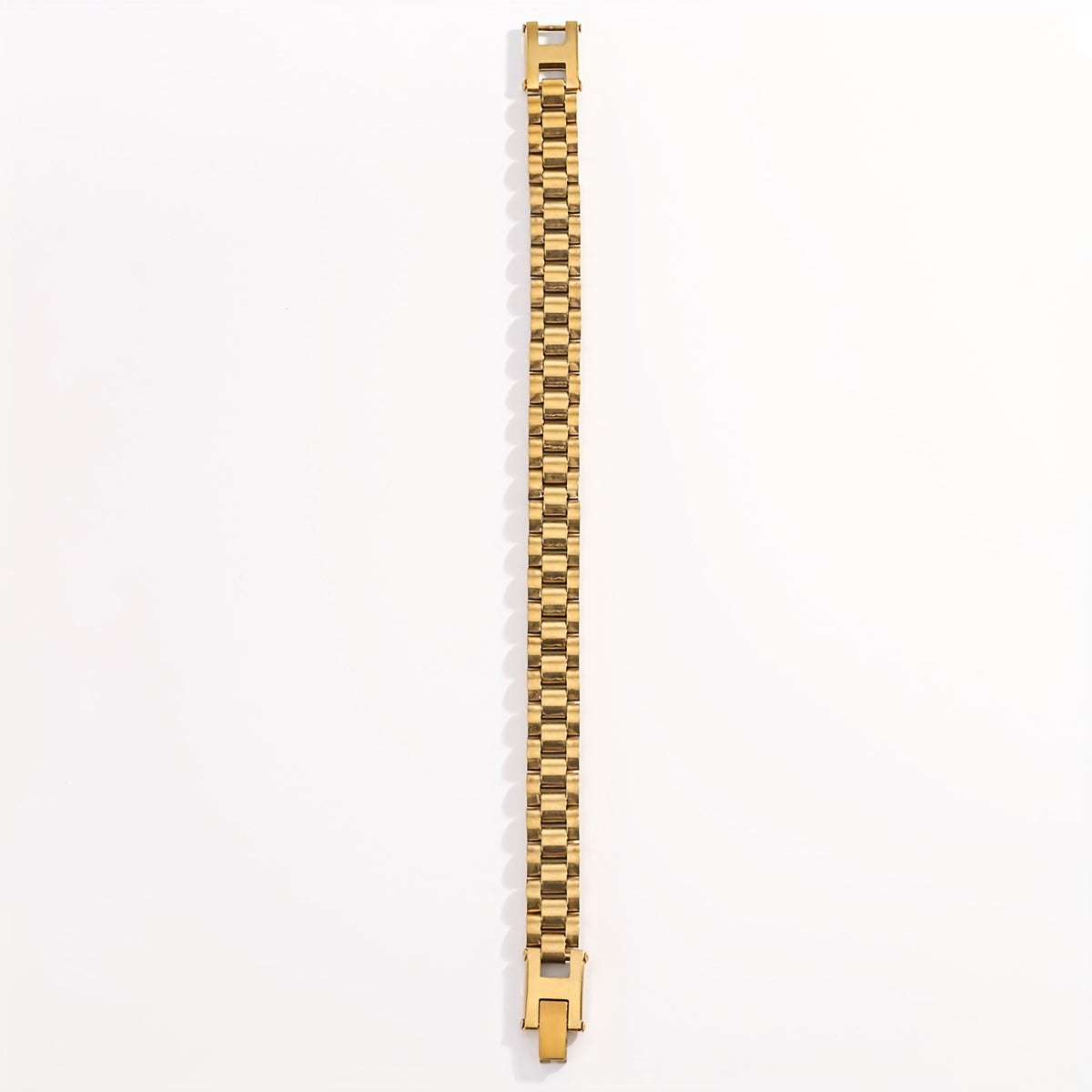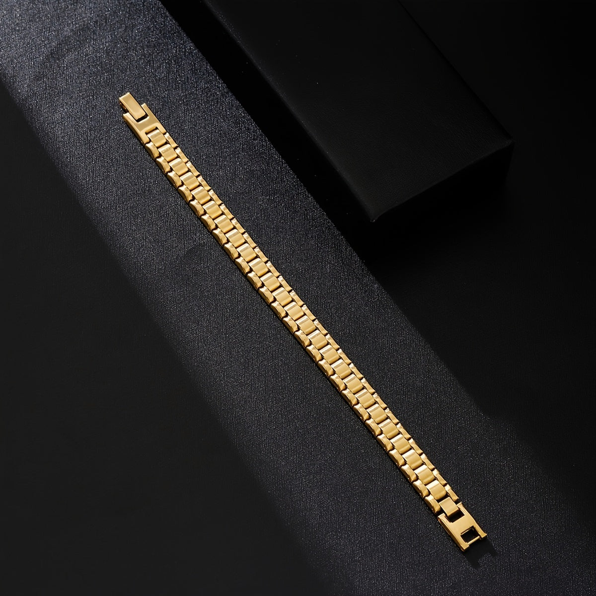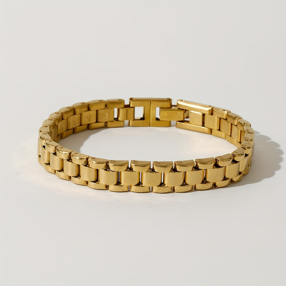 This minimalist golden titanium plated bracelet is made of 304 stainless steel, ideal for couples. It is versatile, durable, and perfect for casual attire.