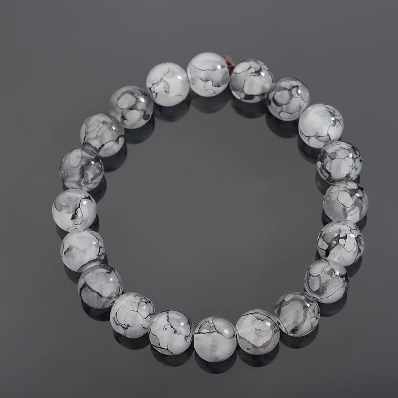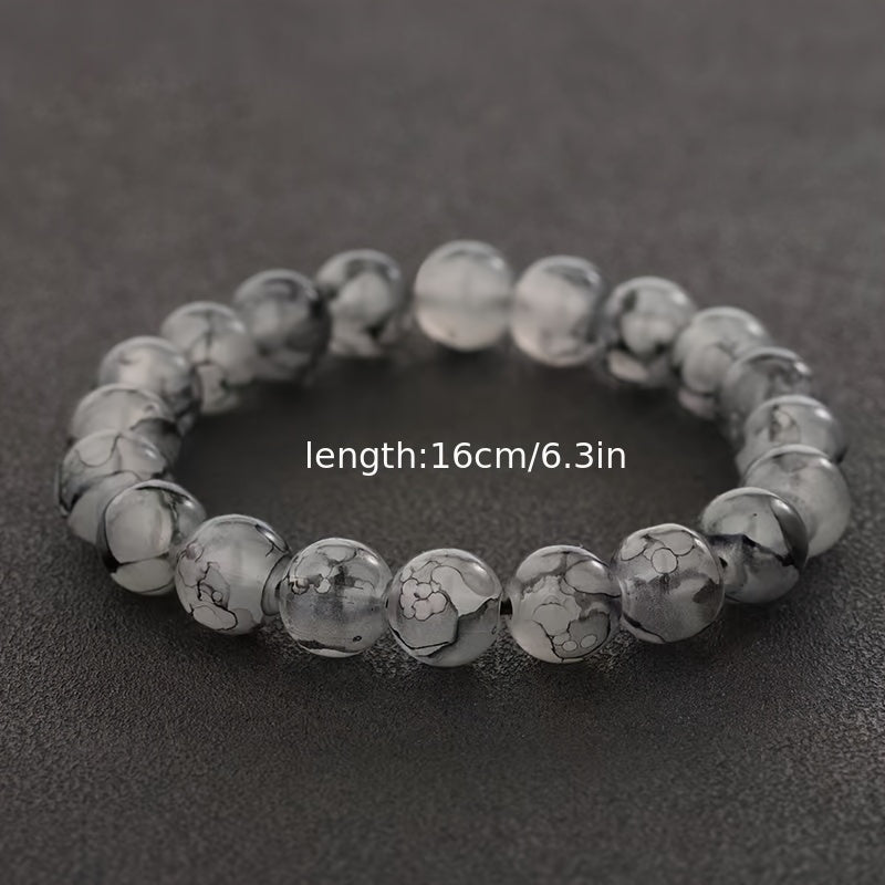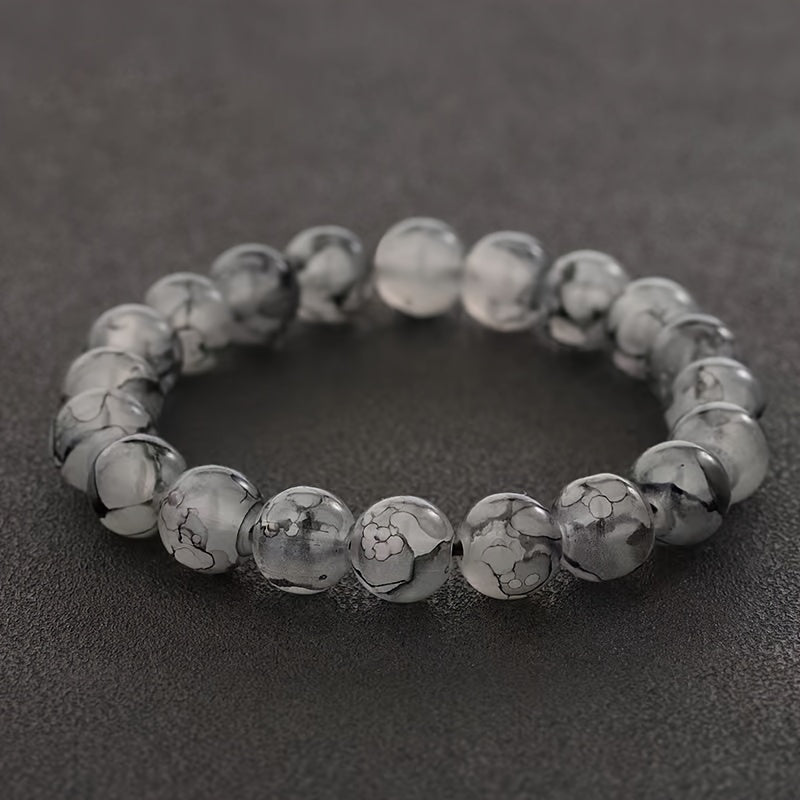 This gray glass bead ink bracelet is a stylish accessory designed for men. It adds a touch of sophistication to any outfit.