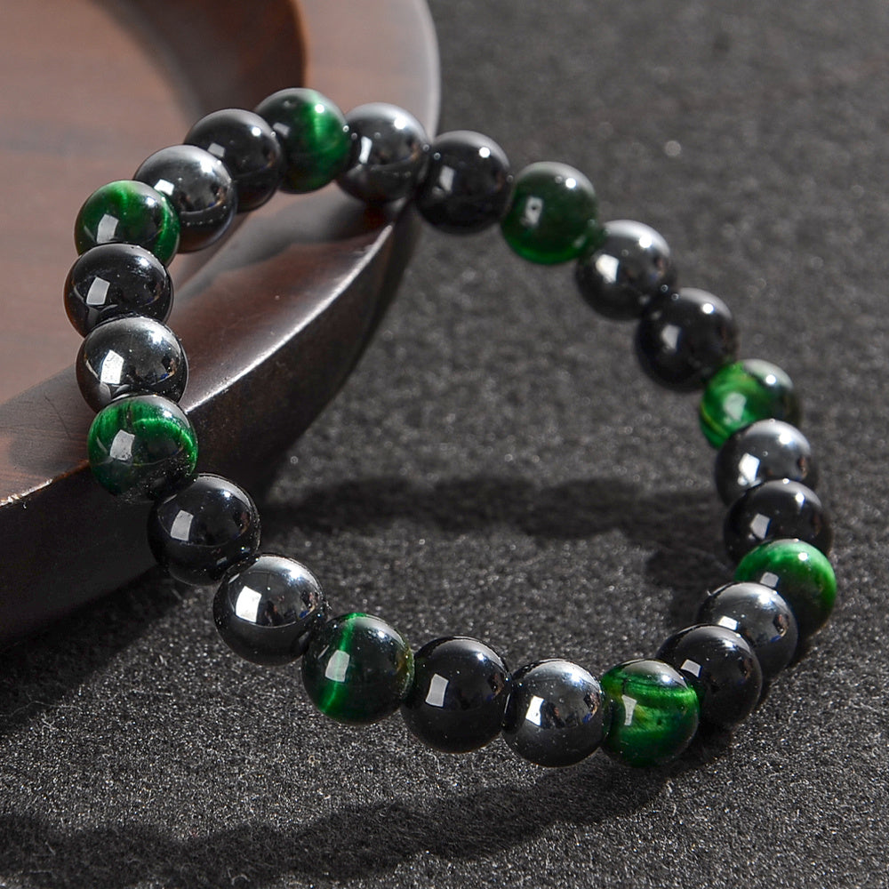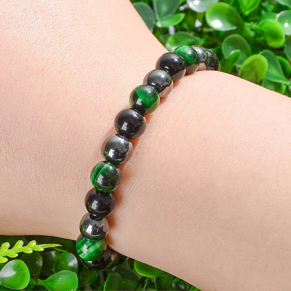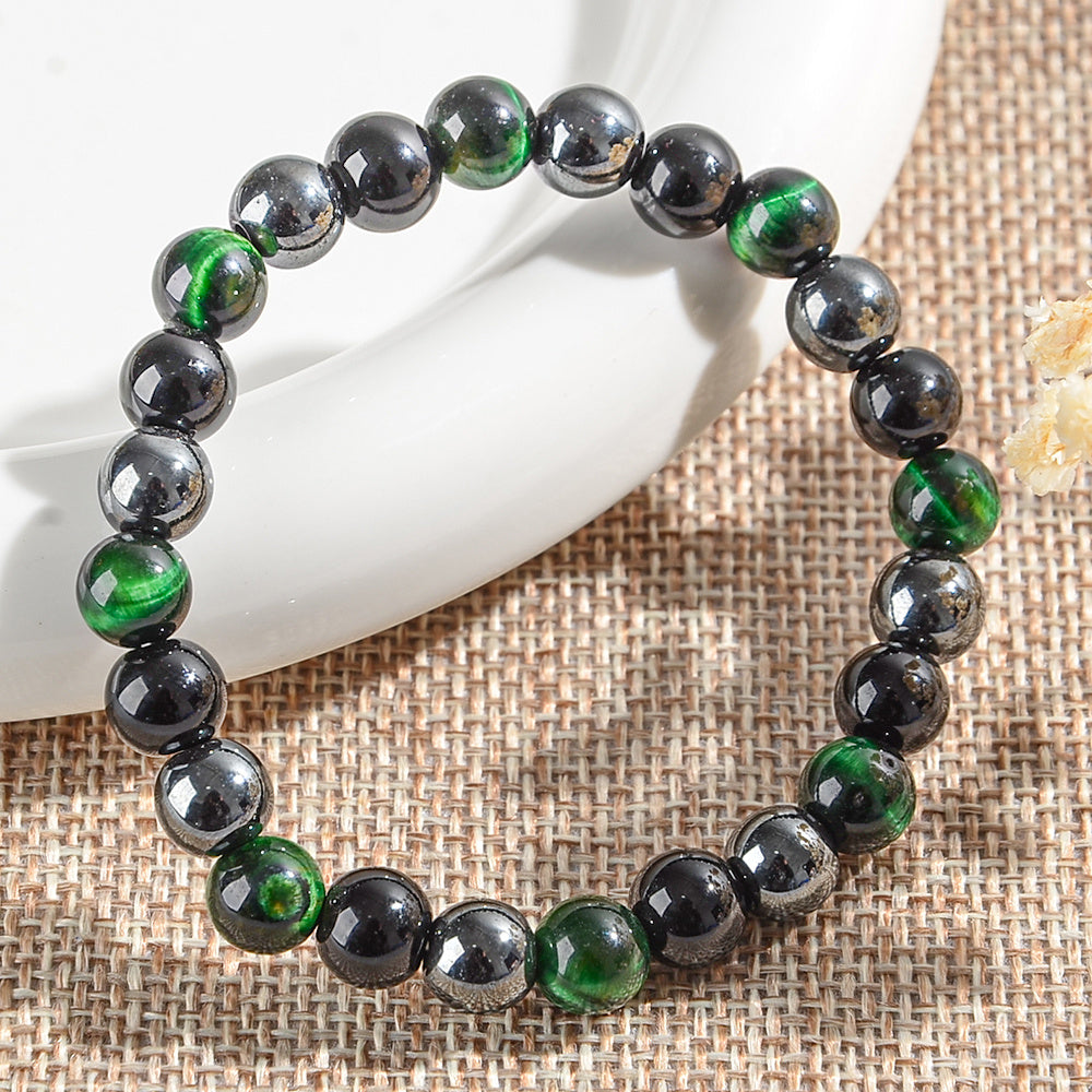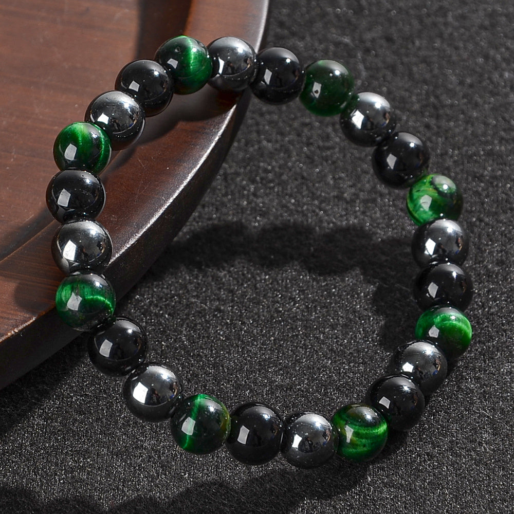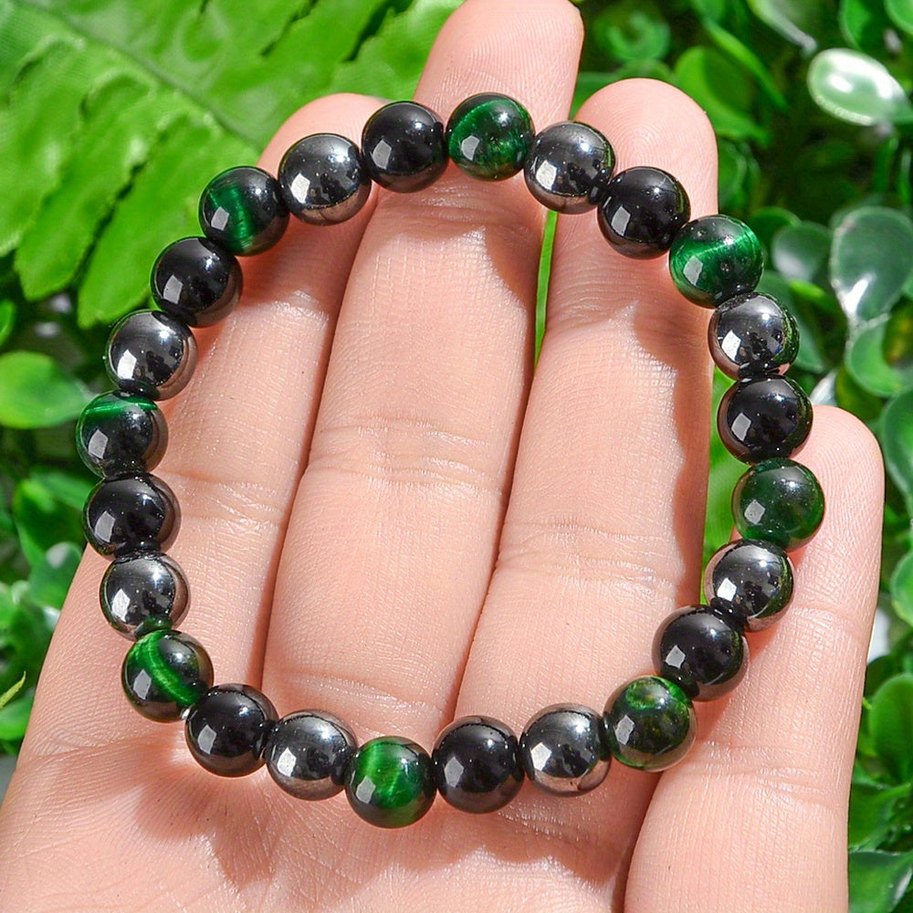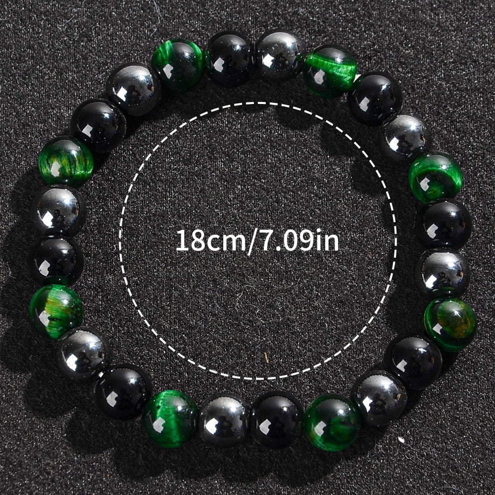 Elevate your casual attire with this stylish natural stone beaded wrist bracelet featuring green faux gemstones. Adjustable fit for all.