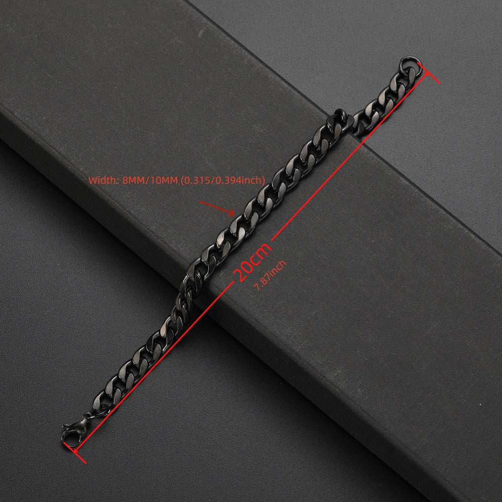 Gunmetal Finish Stainless Steel Chain Bracelet for Men 8-10mm Wide