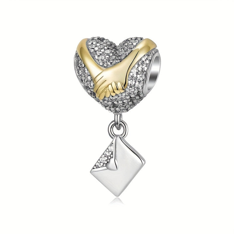This dangle pendant bead features a combination of hand, envelope, and heart shapes, perfect for DIY projects. Add a unique touch to your accessories with this charming bead.