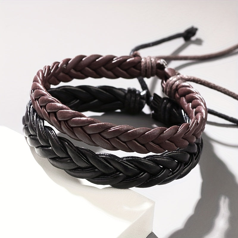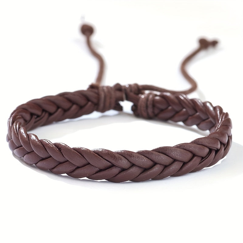 Classic style handwoven faux leather bracelet for men and women. Lightweight and durable, perfect for casual attire and parties.