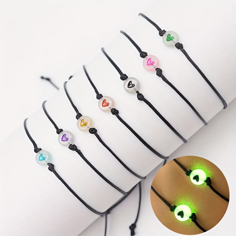 Heart Shaped Luminous Beads Bracelet Adjustable Chain 6 Colors