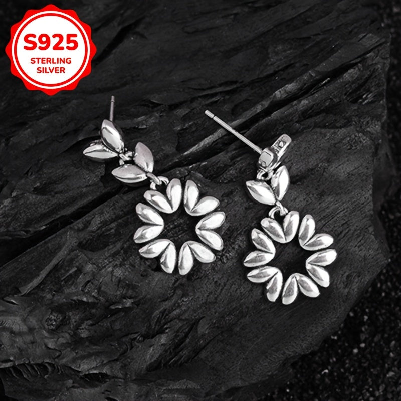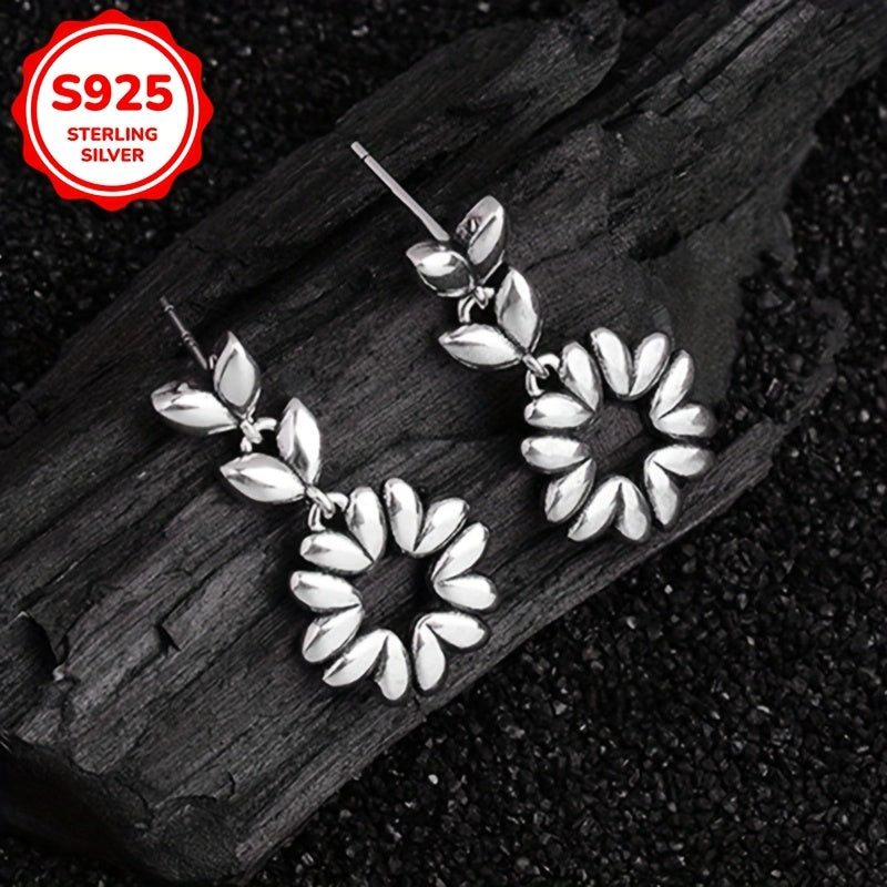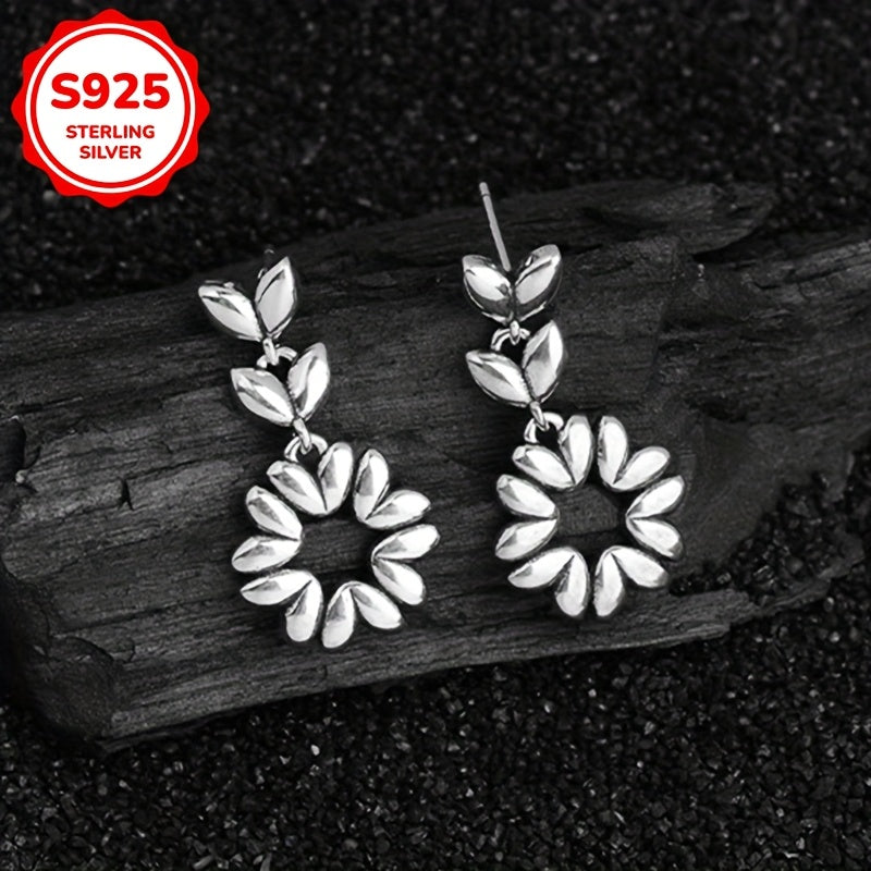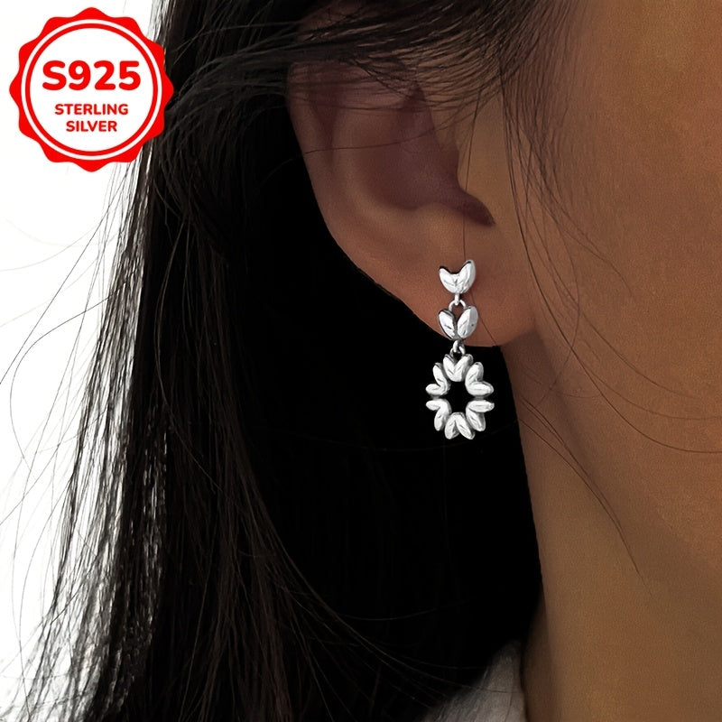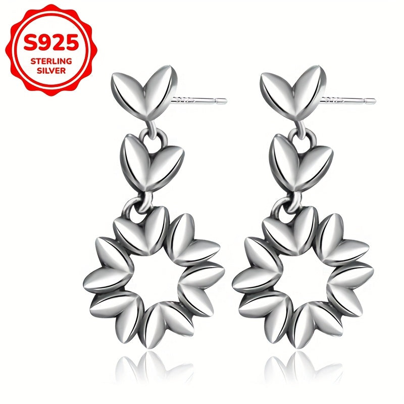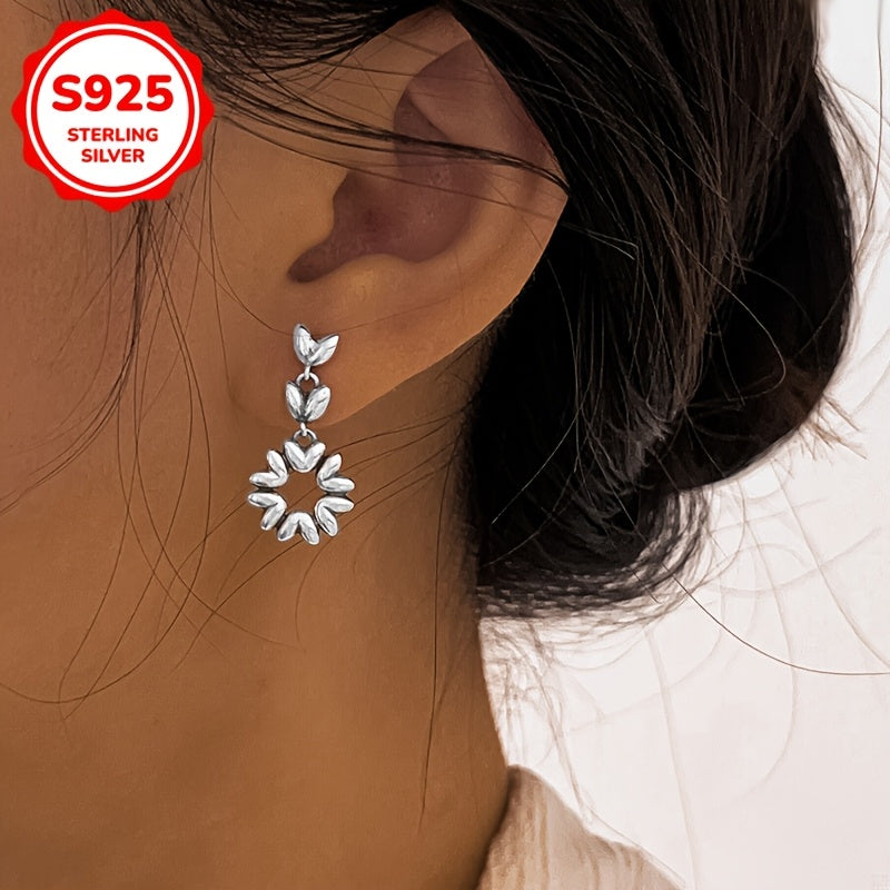 Stylish pendant earrings featuring heart-shaped snowflake design in 925 silver, perfect for daily or party wear.