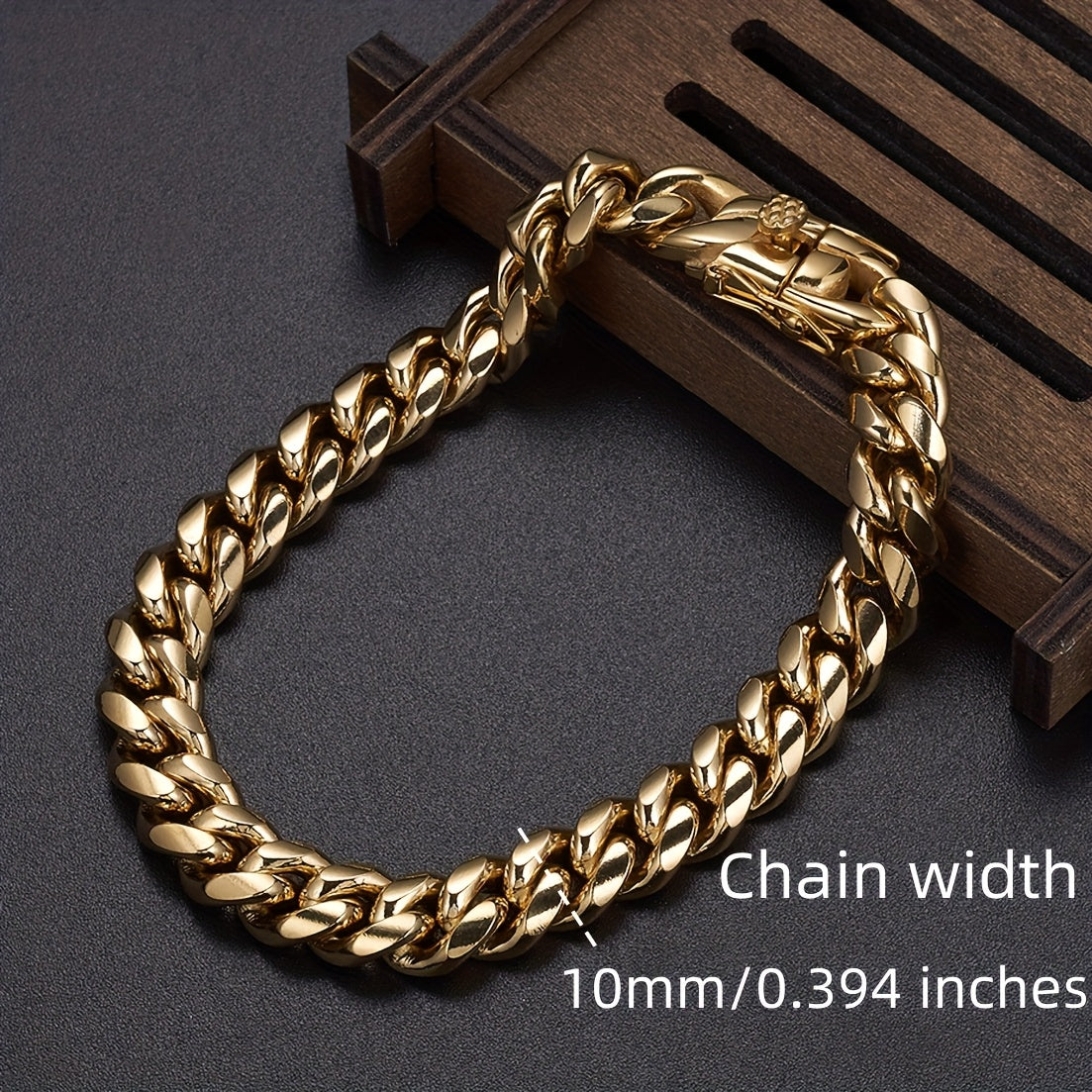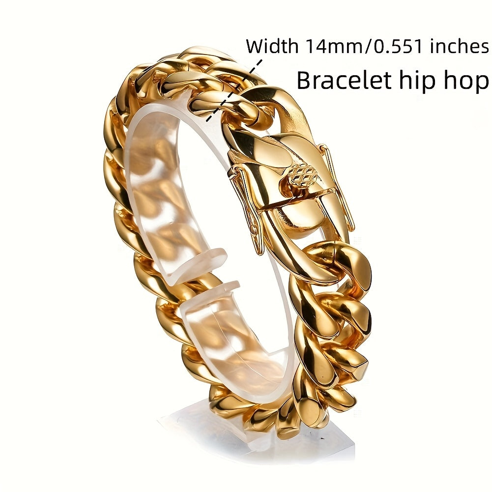 This Hip Hop Chain Bracelet is made of 304 stainless steel, with an adjustable size to fit both men and women. Perfect for parties or as a versatile gift.