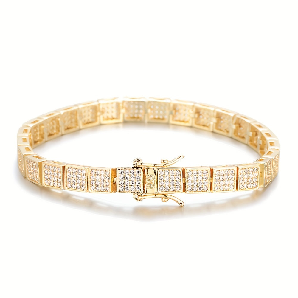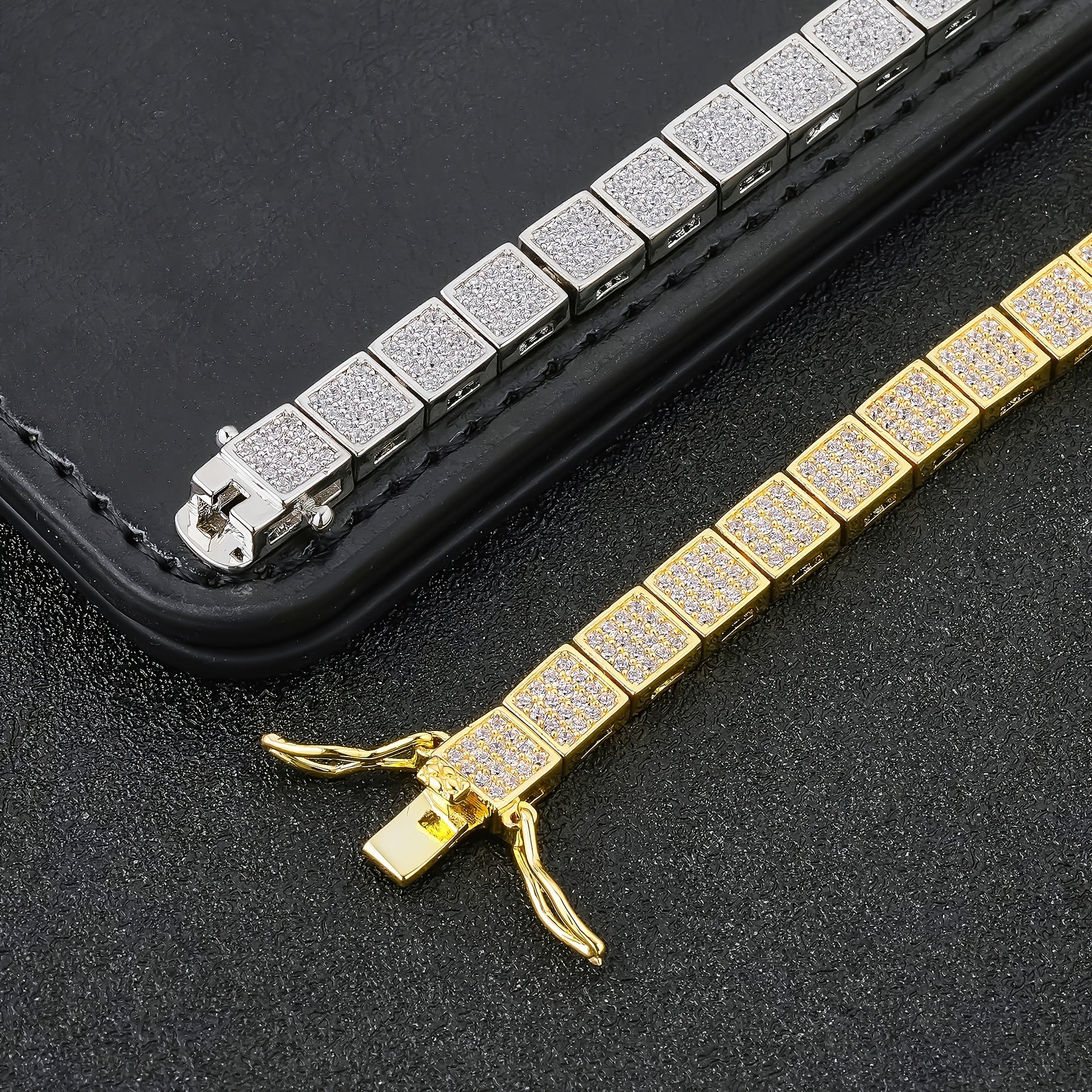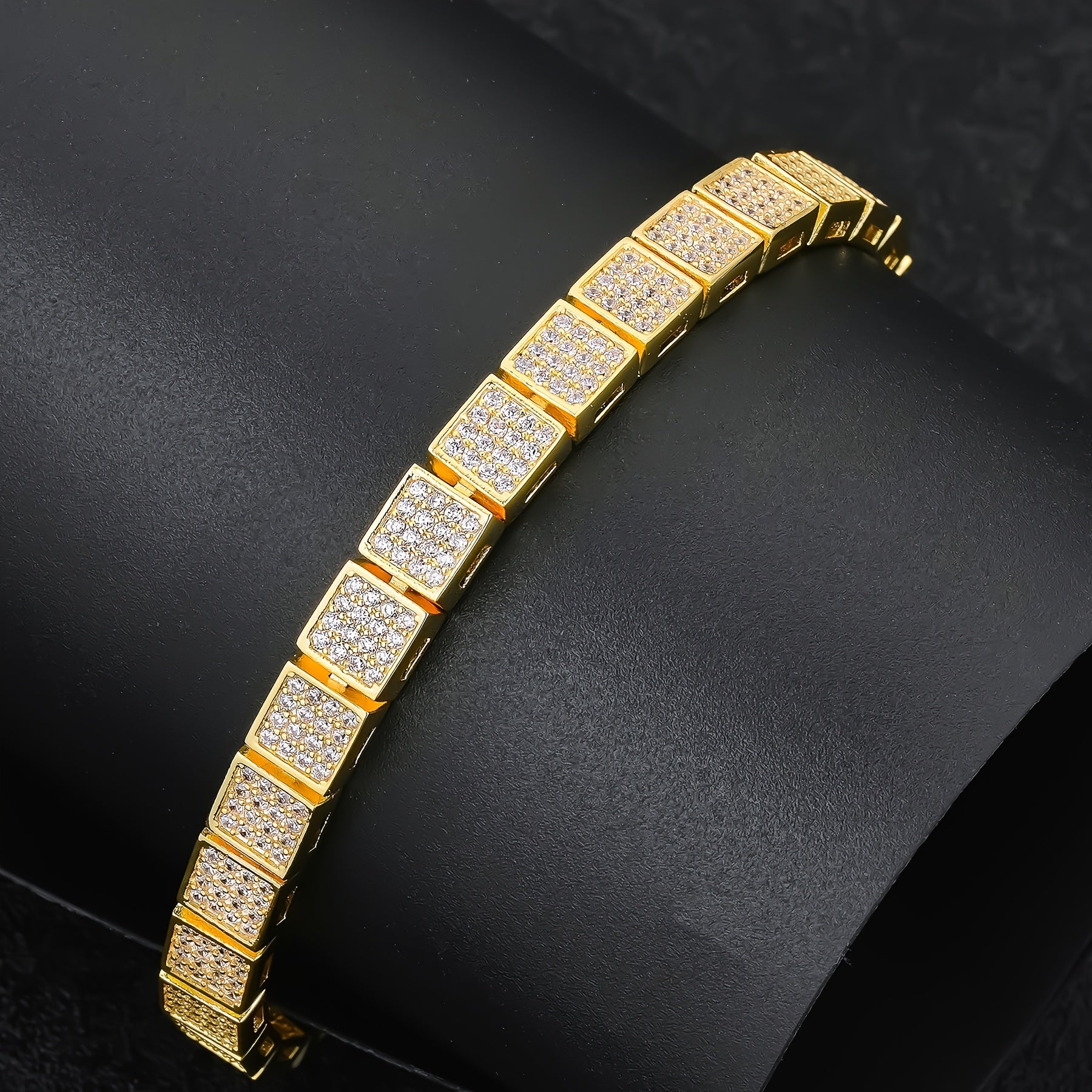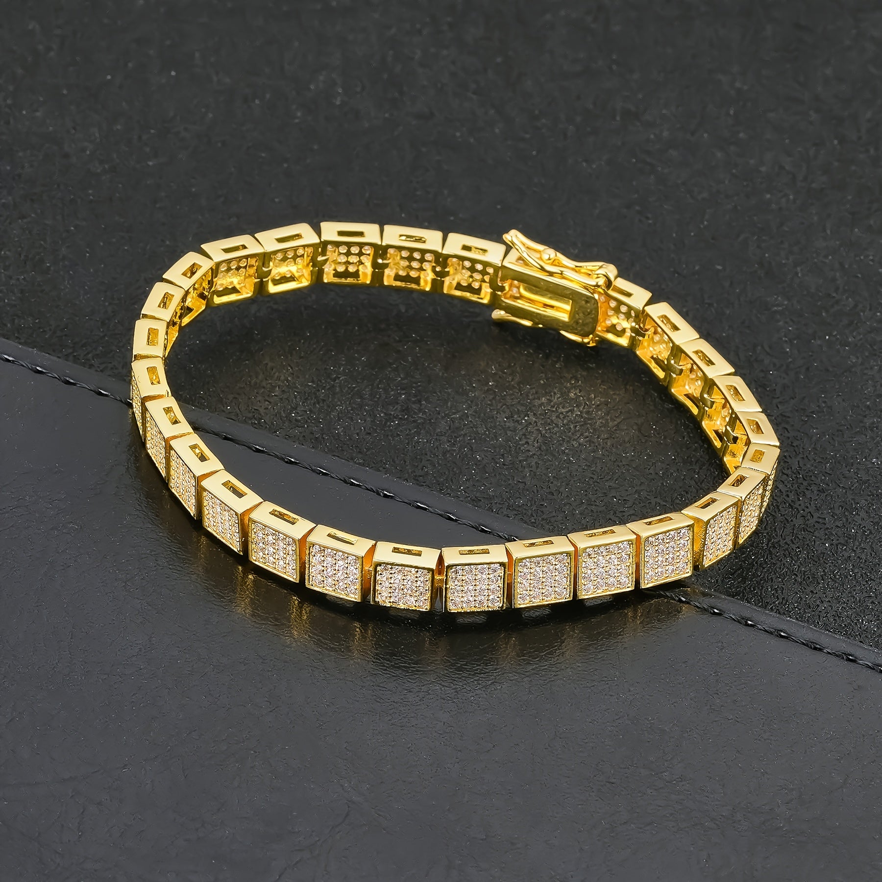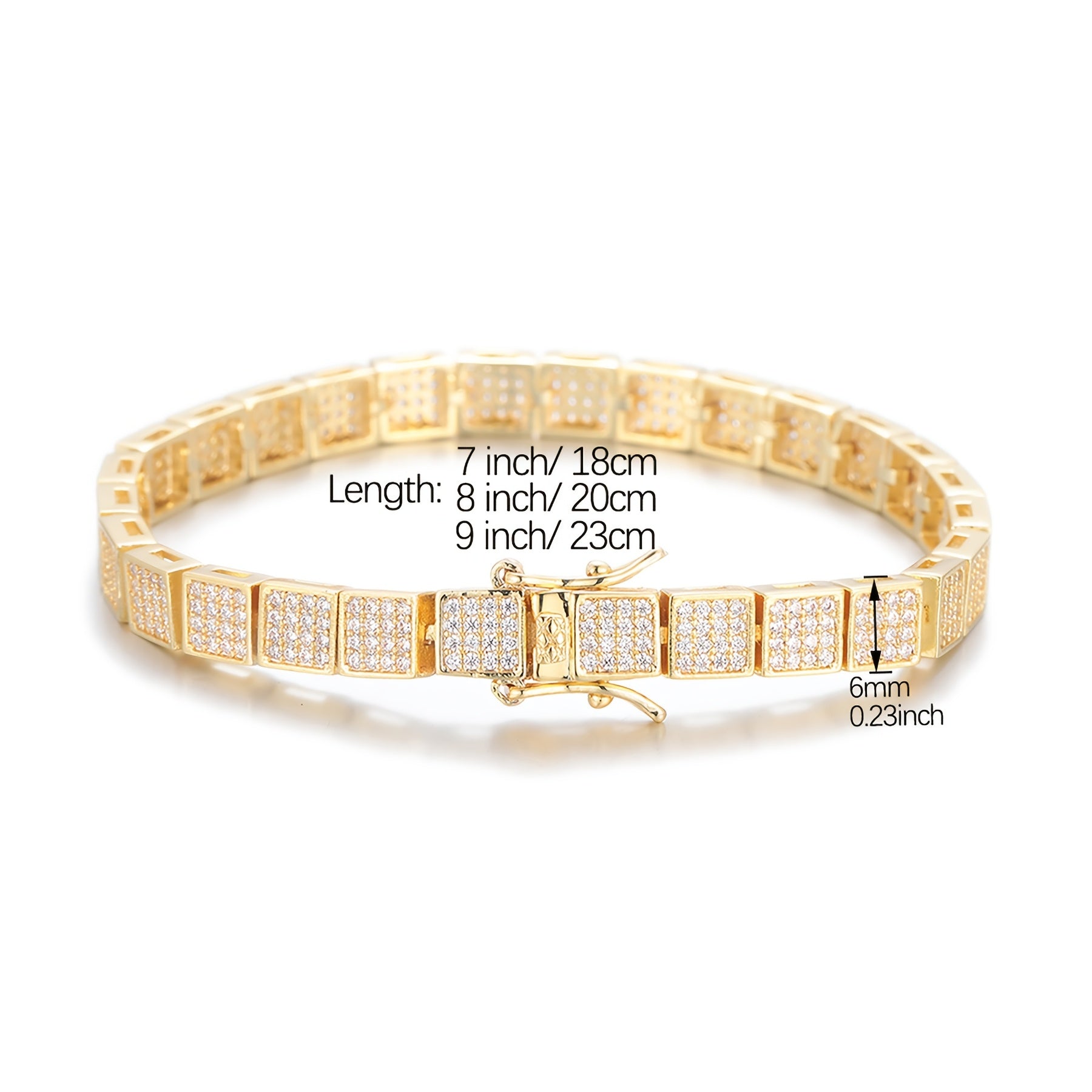ICEDCHICS Men's 6mm Square Hip Hop Bracelet Golden Tone with Synthetic Stones