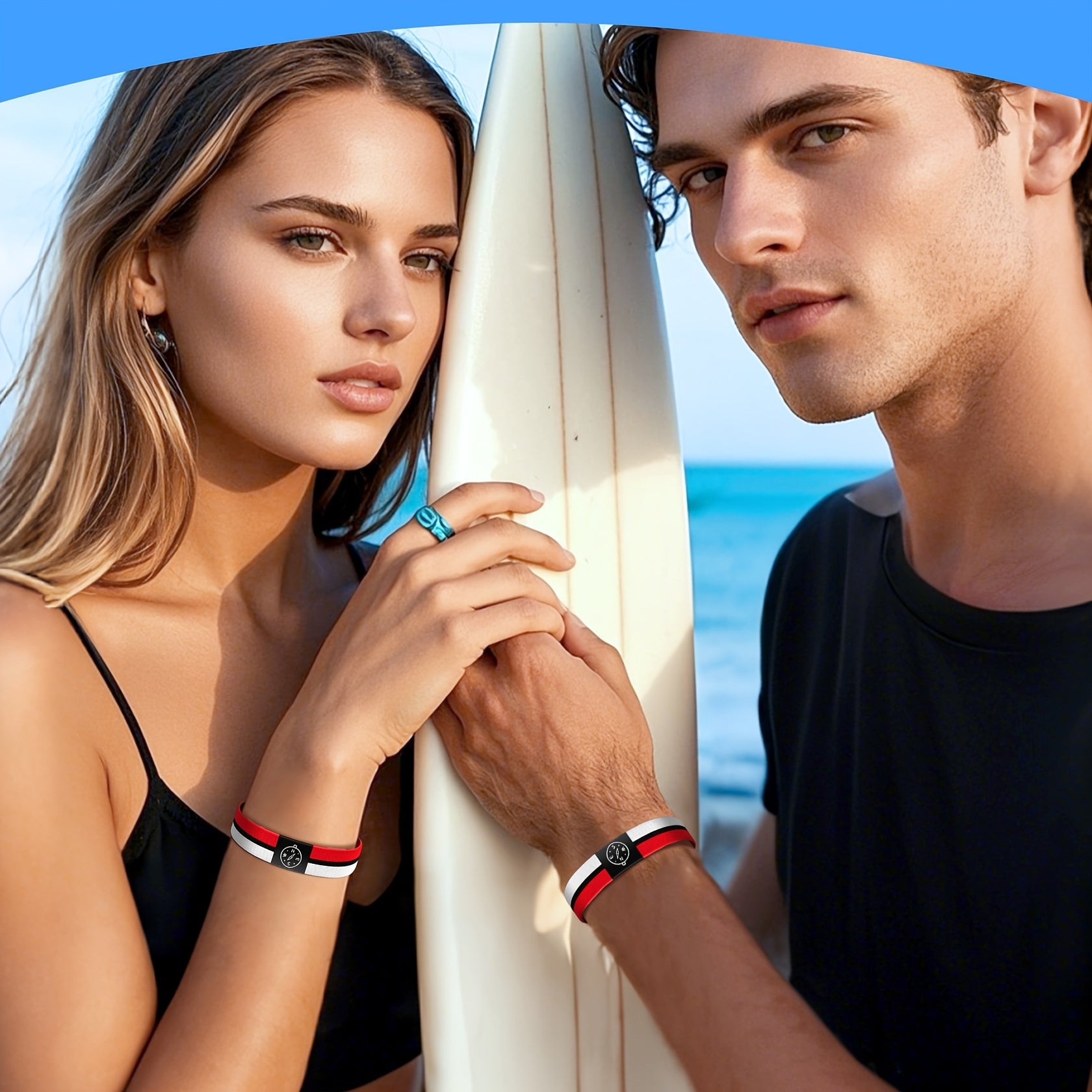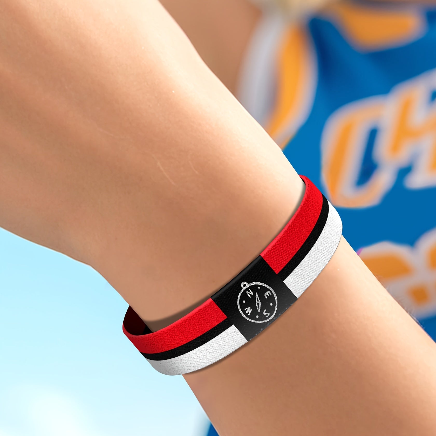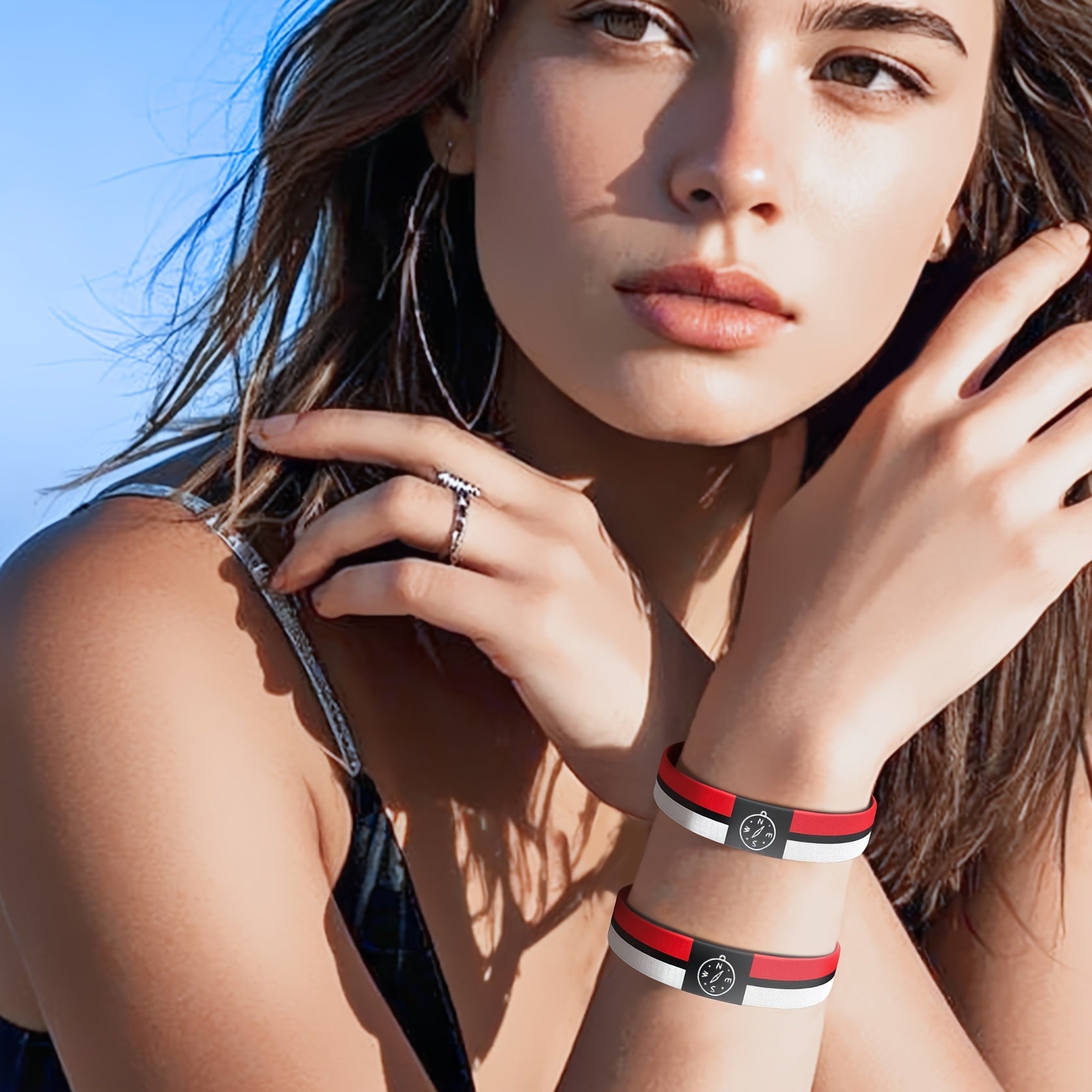 This elastic bangle bracelet is inspired by anime and features a red design with a compass. It is perfect for daily wear and parties, making it an ideal gift for both women and men.