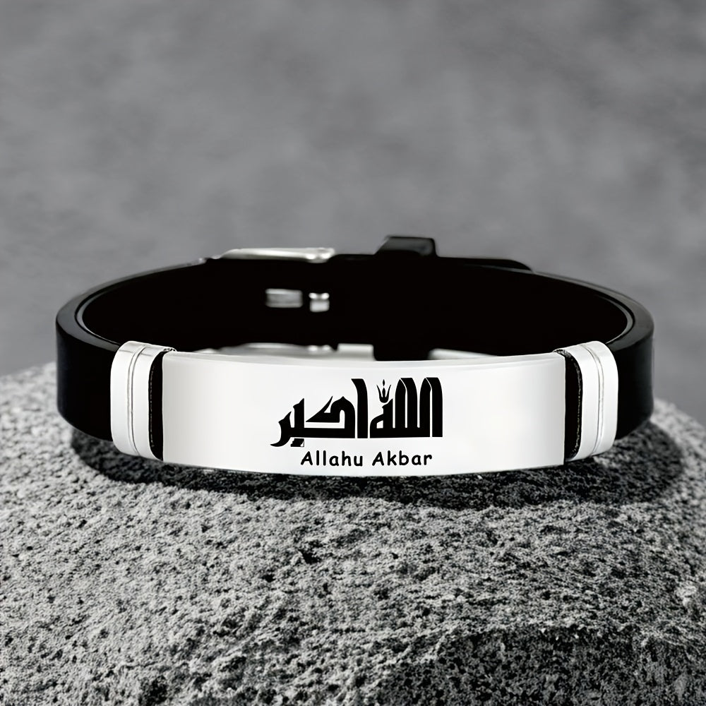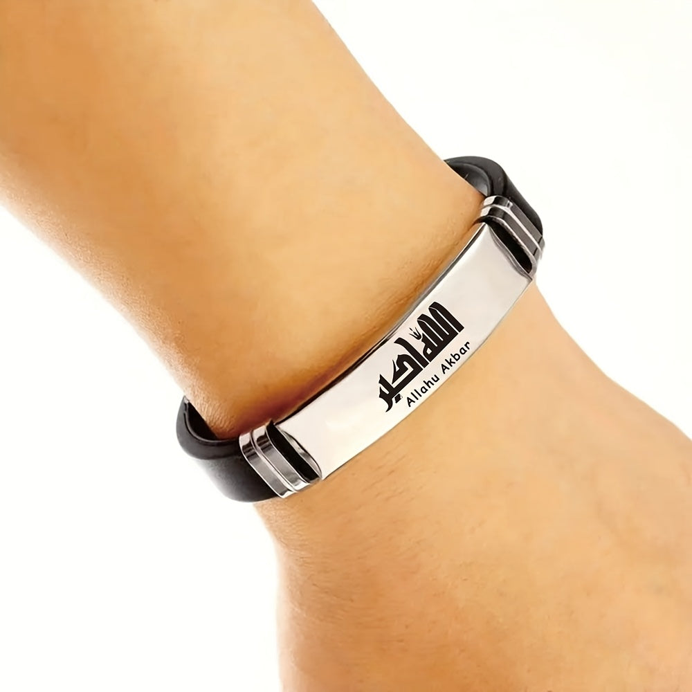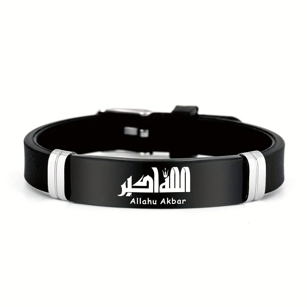 Islamic Muslim Arabic Stainless Steel Silicone Bracelet Engraved Persian Arabic