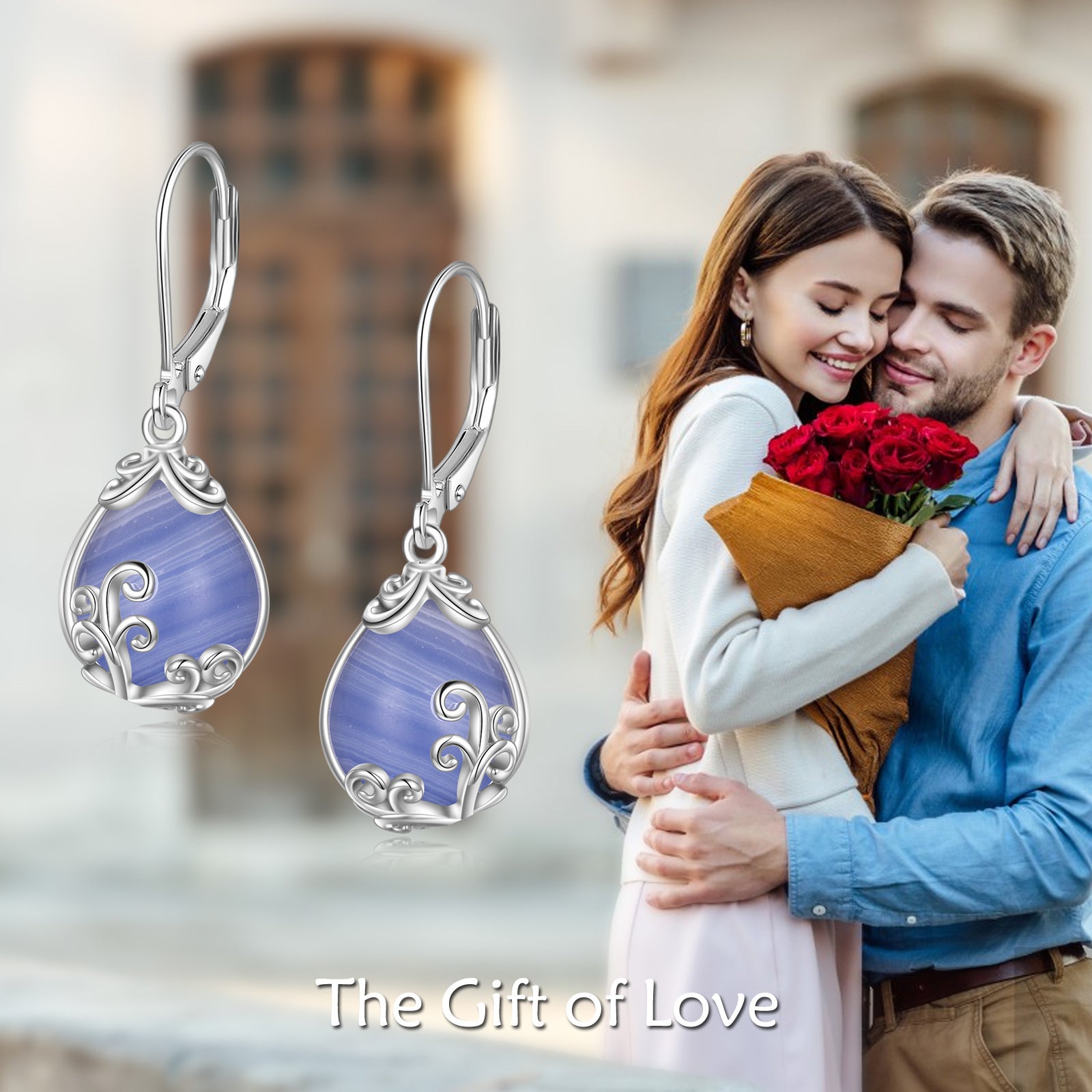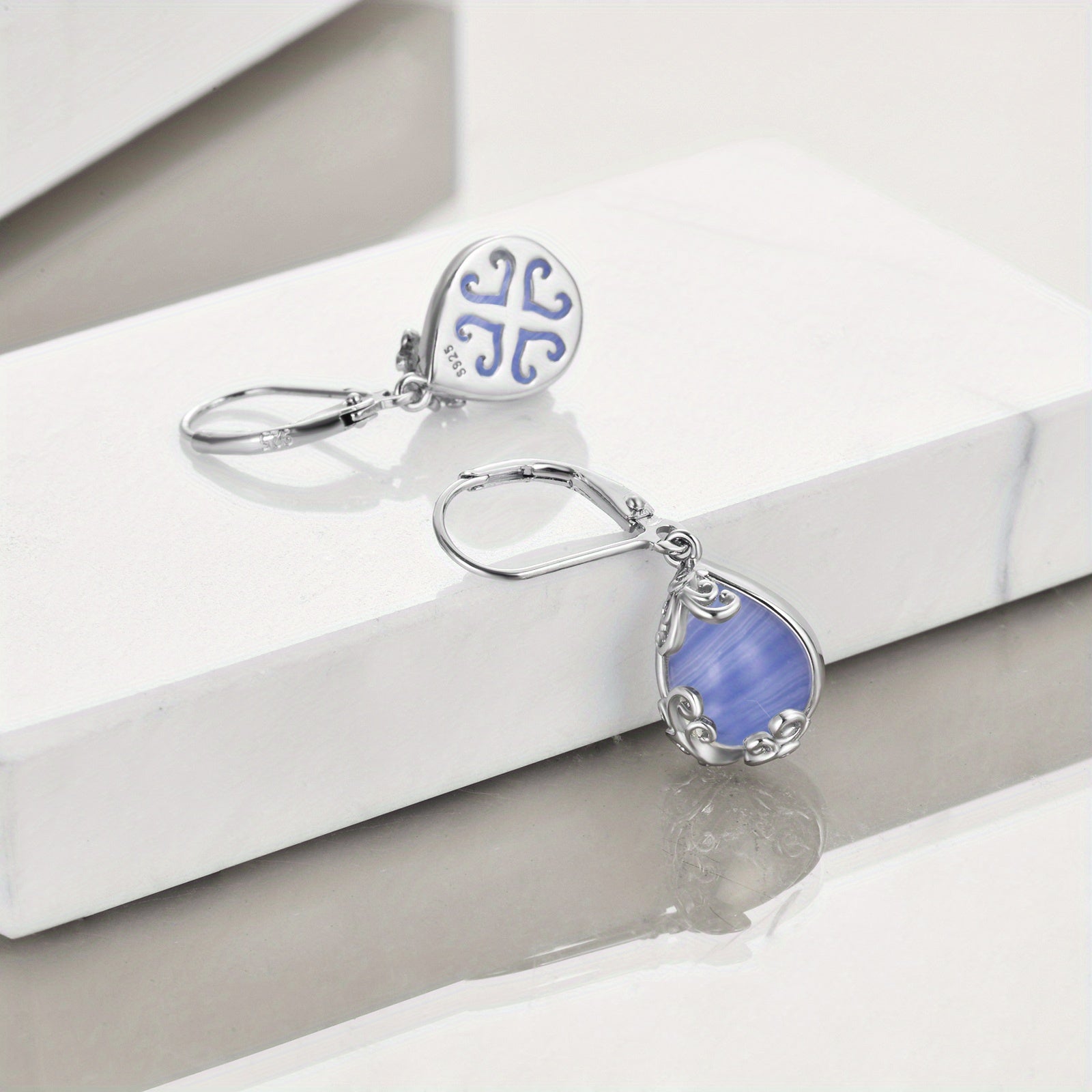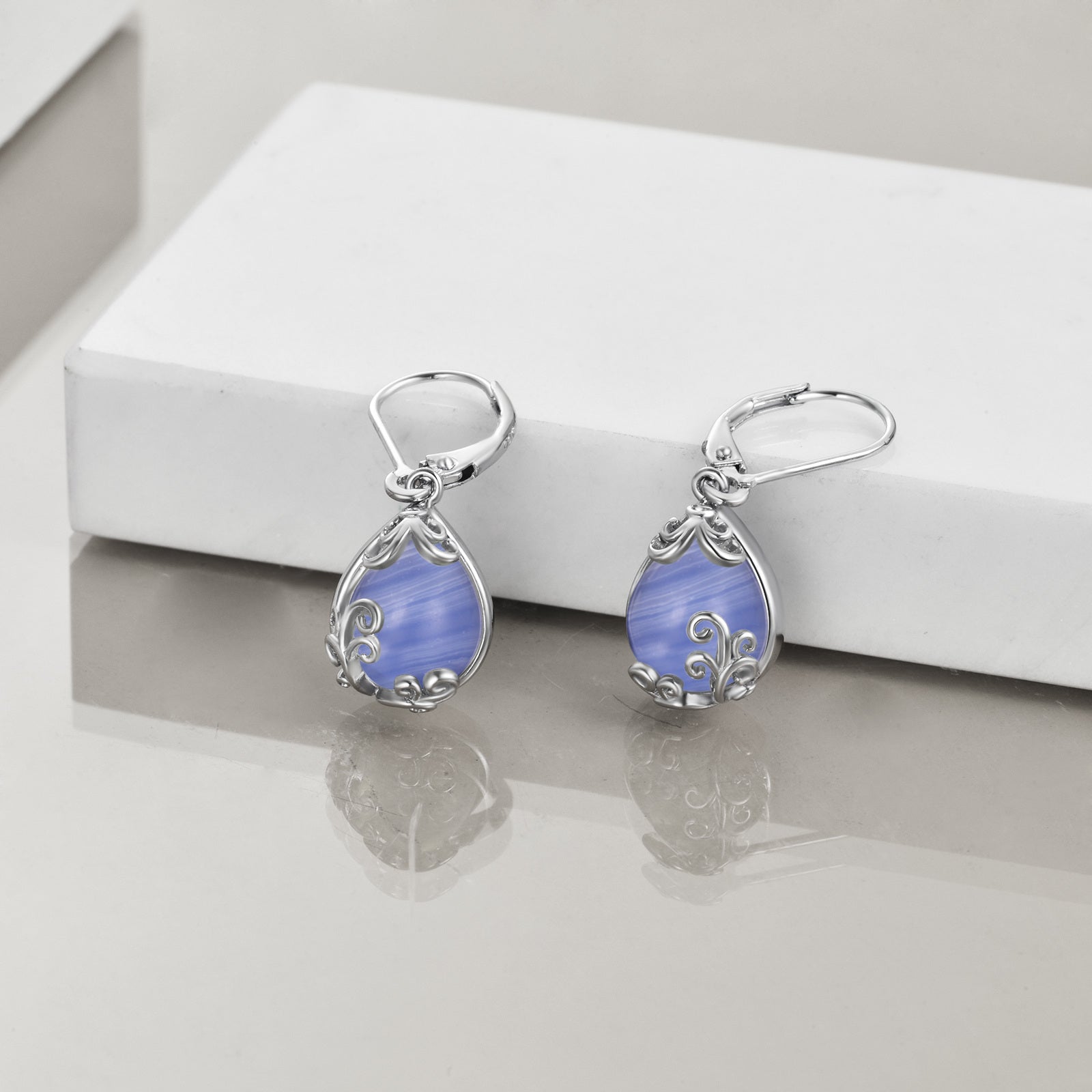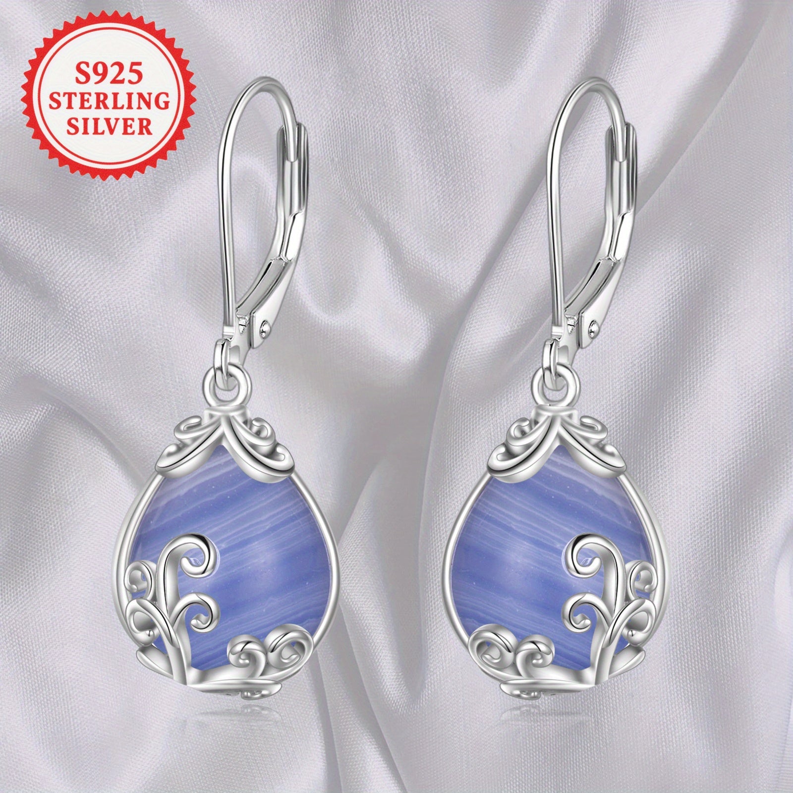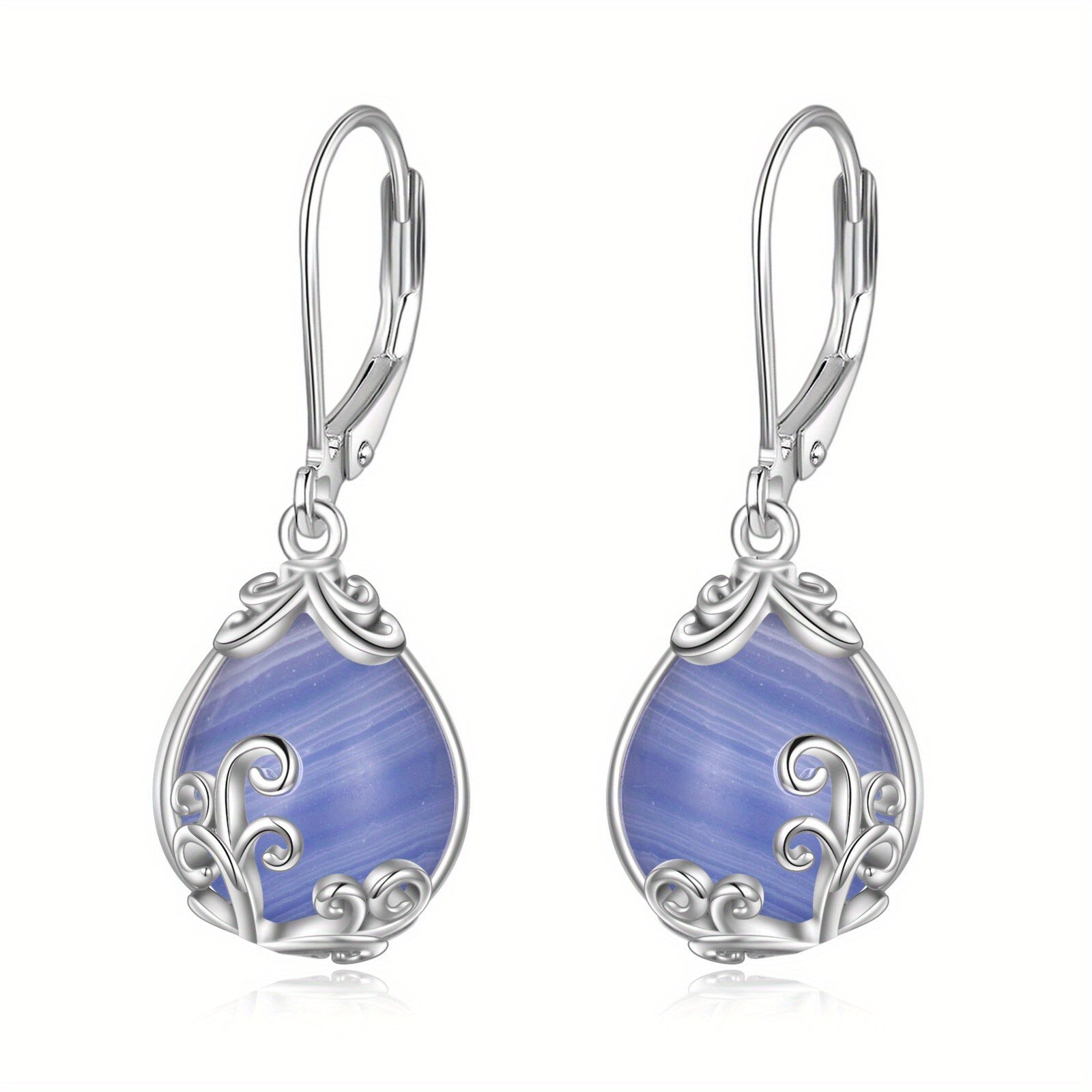 Lace Agate Teardrop Dangle Earrings Sterling Silver Jewelry for Women
