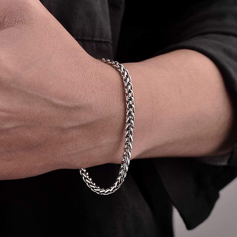 Elevate your style with this 4mm woven basket stainless steel bracelet. Fade resistant and water washable, this bracelet is ideal for everyday and formal wear.