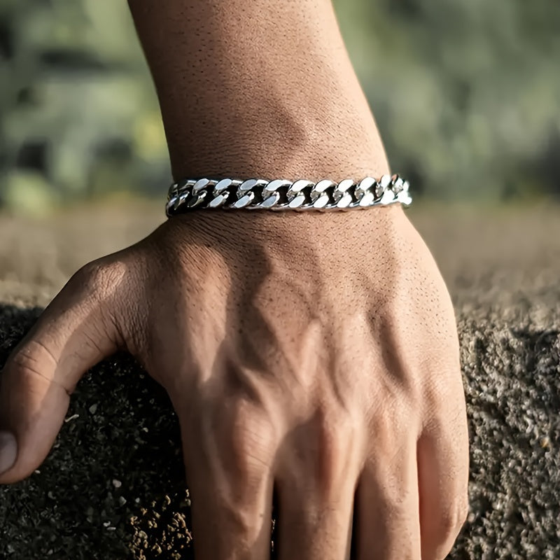 This modern Cuban chain bracelet is hypoallergenic, fade resistant, and washable, making it the perfect gift for hip hop party jewelry.