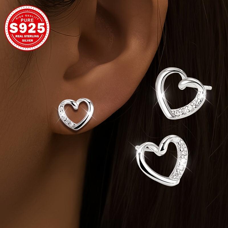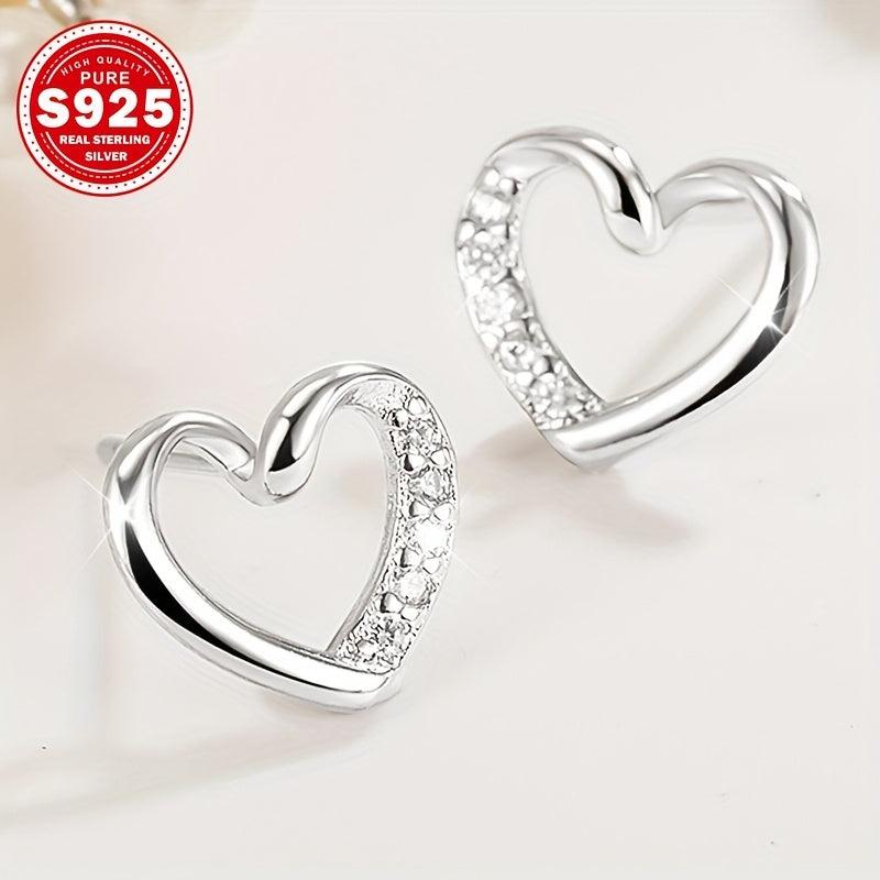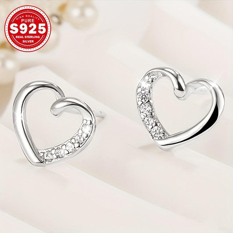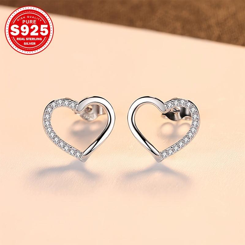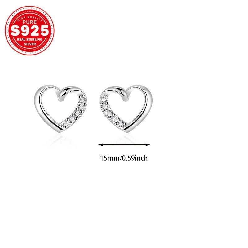 This pair of love earrings is made of high-quality s925 silver and features synthetic zirconia stones. The unique small peach heart design makes it suitable for multiple occasions.