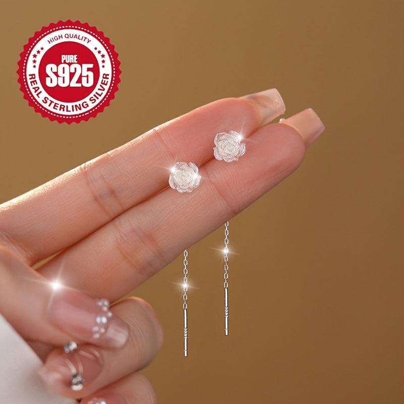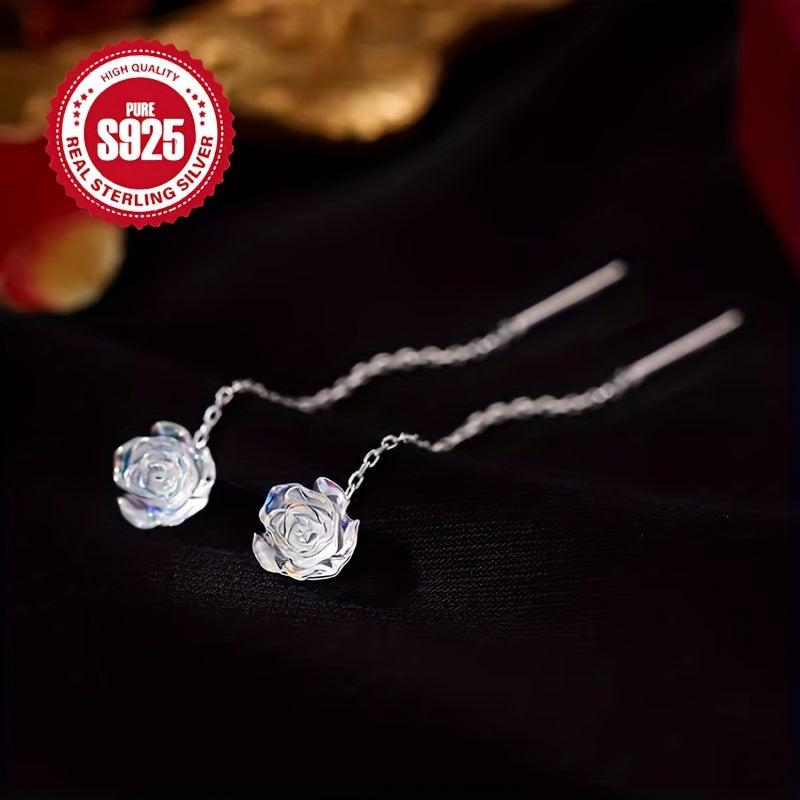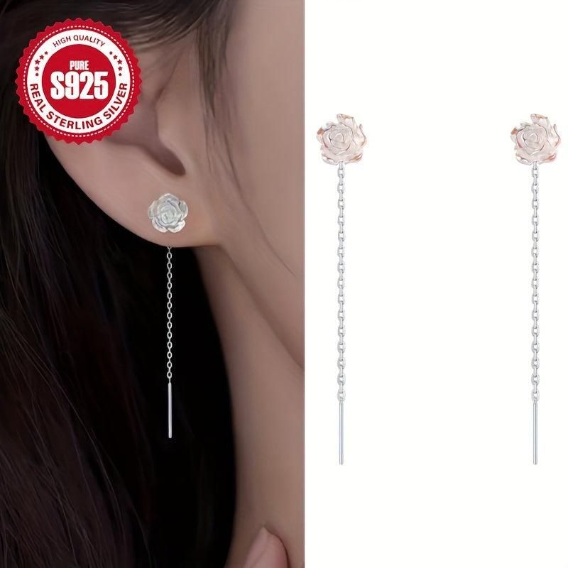 Low Allergy Rose Tassel Earrings for Women in S925 Silver