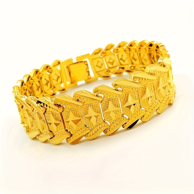 Men's 18K Plated Star Pattern Cuff Bracelet Urban Jewelry