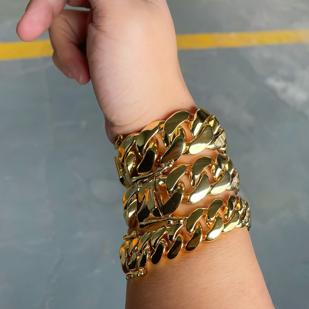 Men's 18MM Cuban Link Chain Bracelet Copper Construction Jewelry Gift