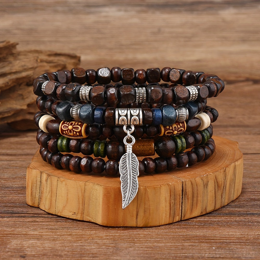 This set includes 5 elastic beaded bracelets for men, perfect for casual wear or combining with other jewelry pieces.