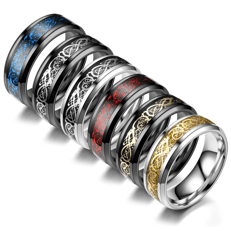 Stylish band ring crafted from stainless steel with an abstract design.