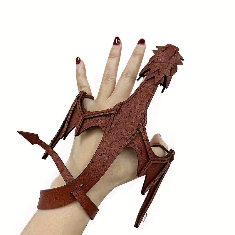Enhance your style with this fantasy role play inspired cuff bracelet made of PU leather. Perfect for a touch of edgy charm.