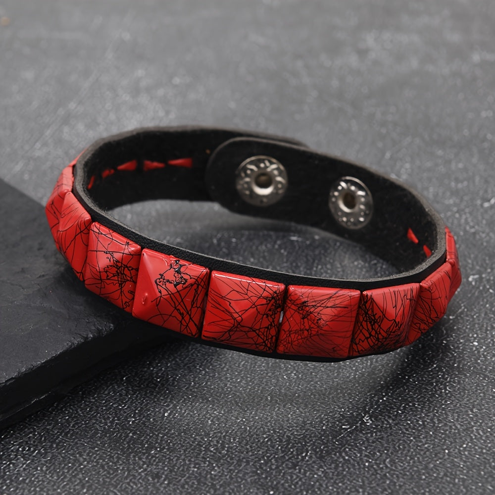 Men's Adjustable Faux Leather Bracelet with Square Buckle - Grey Beige