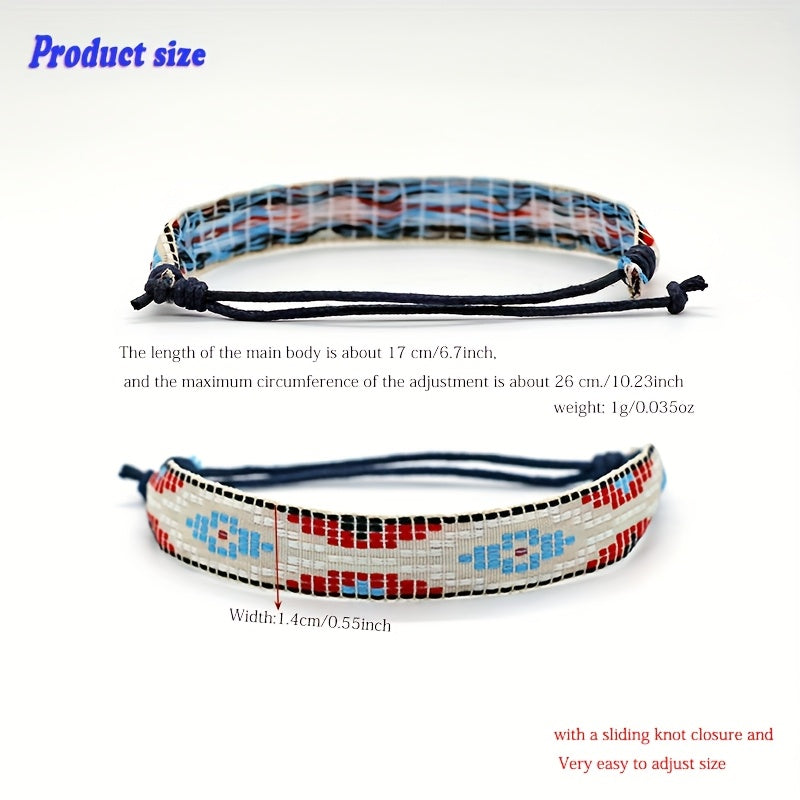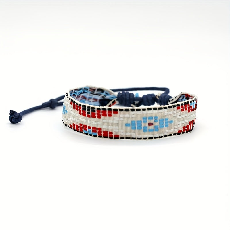 This stylish woven bracelet is perfect for sports, holidays, and outdoor activities. It features bohemian motifs and is suitable for casual attire, parties, and music festivals. It is a versatile accessory for all seasons.