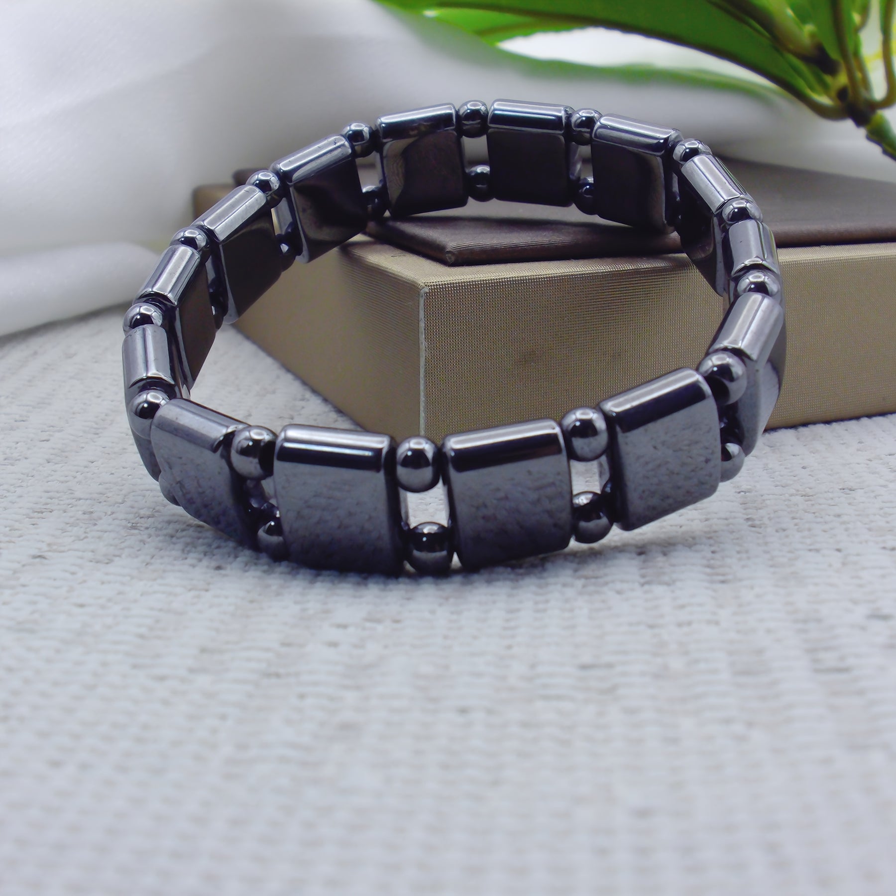 Men's Agate Bead Bracelet Stretchy Rope Bead & Agate Charm