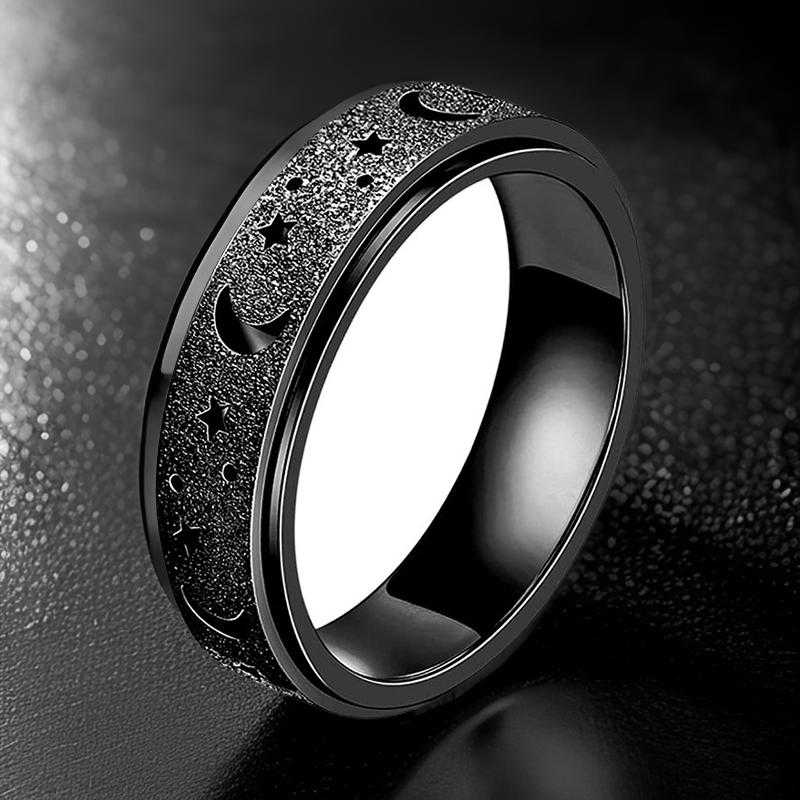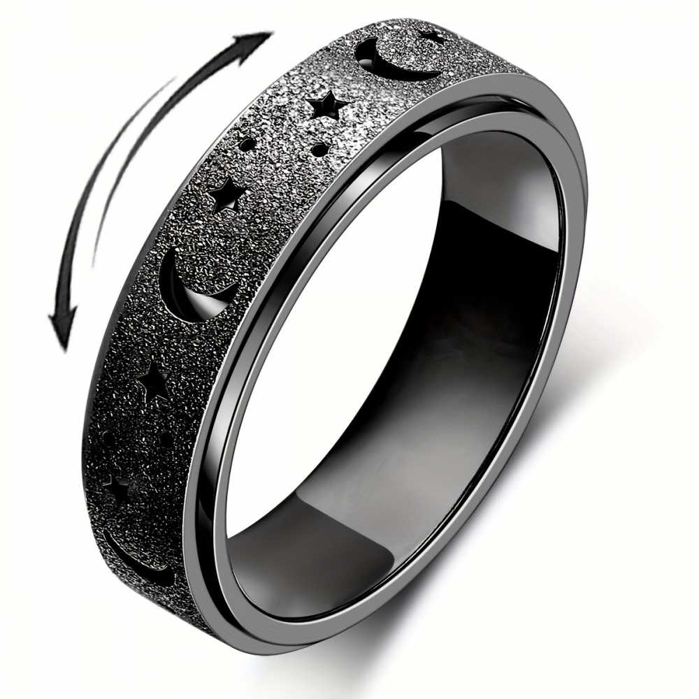 Men's Black Stainless Steel Rotatable Finger Ring With Moon And Stars Design